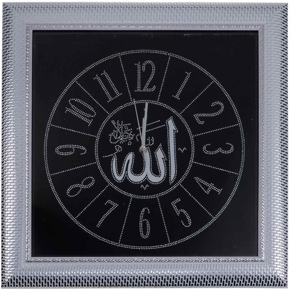 Teslimat: 1x "Allah" Yazılı Duvar Saati | Kare | Beyaz - Gümüş | IS5050-A-WS