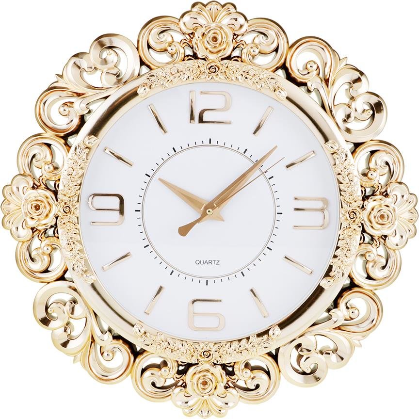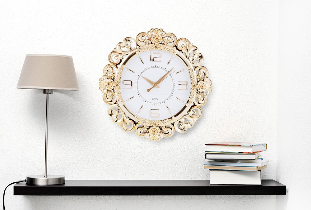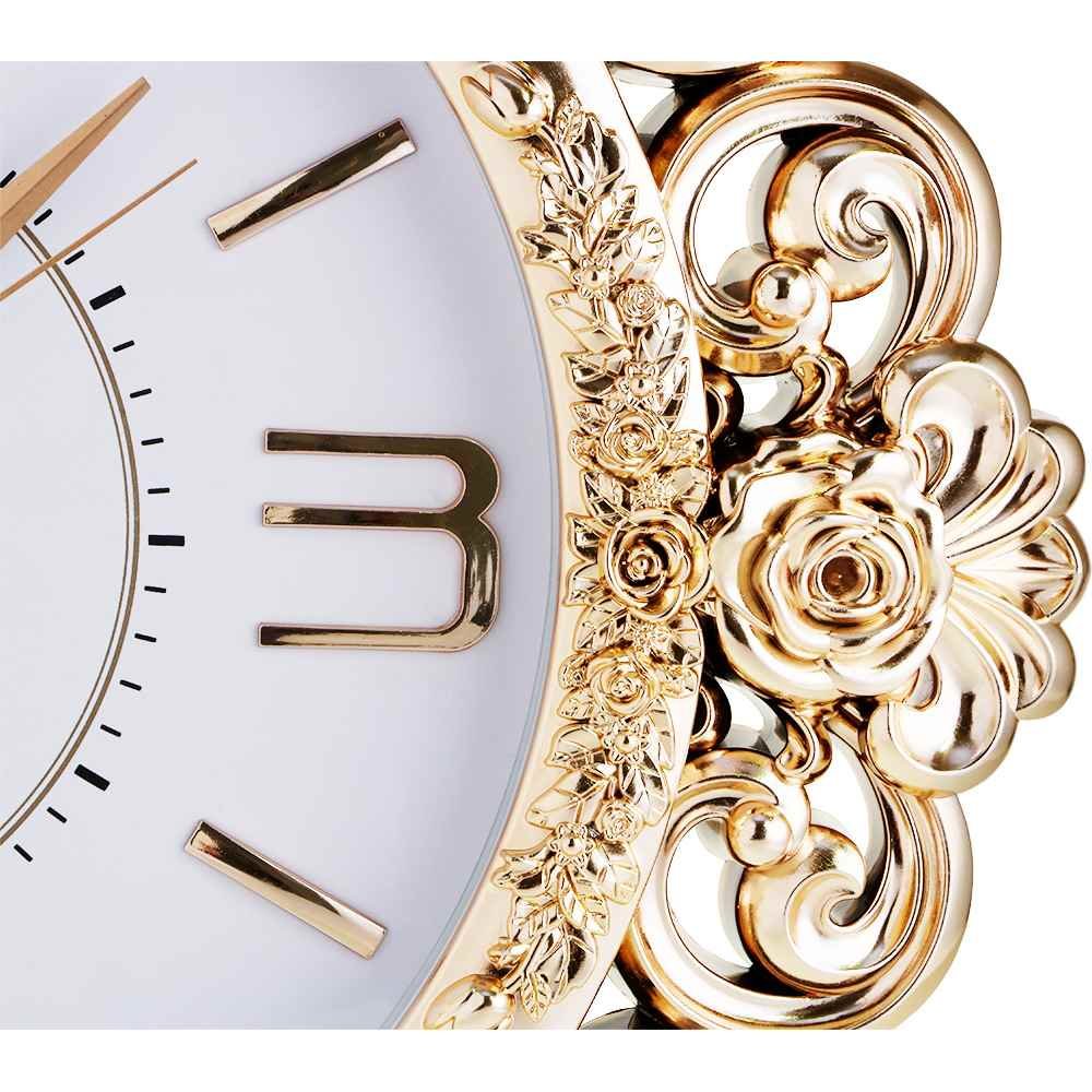 Teslimat: 1x Almina Dekoratif Gül Desenli Duvar Saati - Altın Rengi