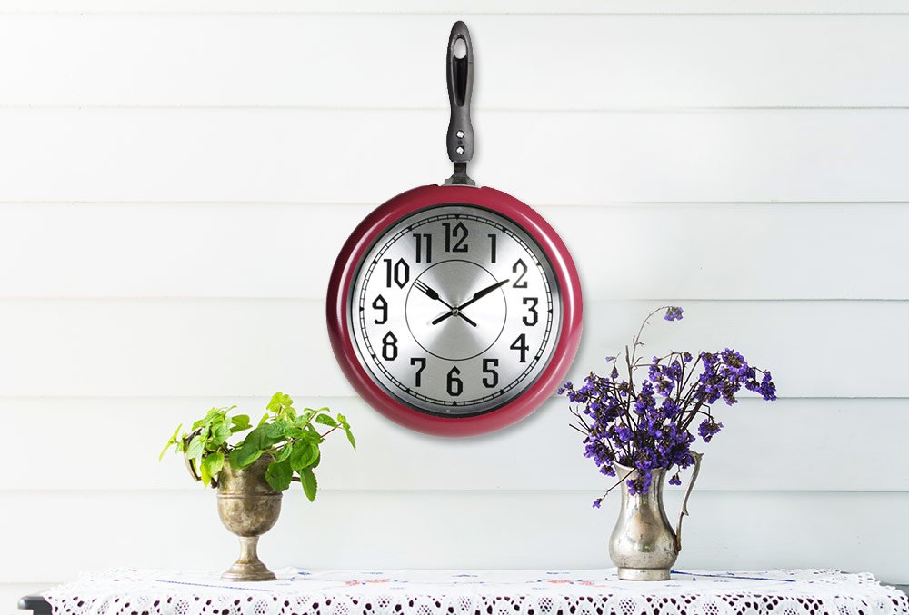 Teslimat: 1x Pan Tarzı Arthur Duvar Saati - Bordo - Gümüş