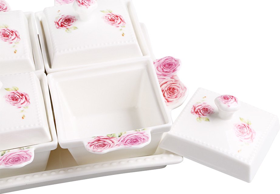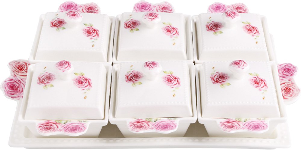 Teslimat ve Boyutlar: 1 x Duygu 13 Parça Çiçek Desenli Porselen Kahvaltı Kase Seti | DG-9624