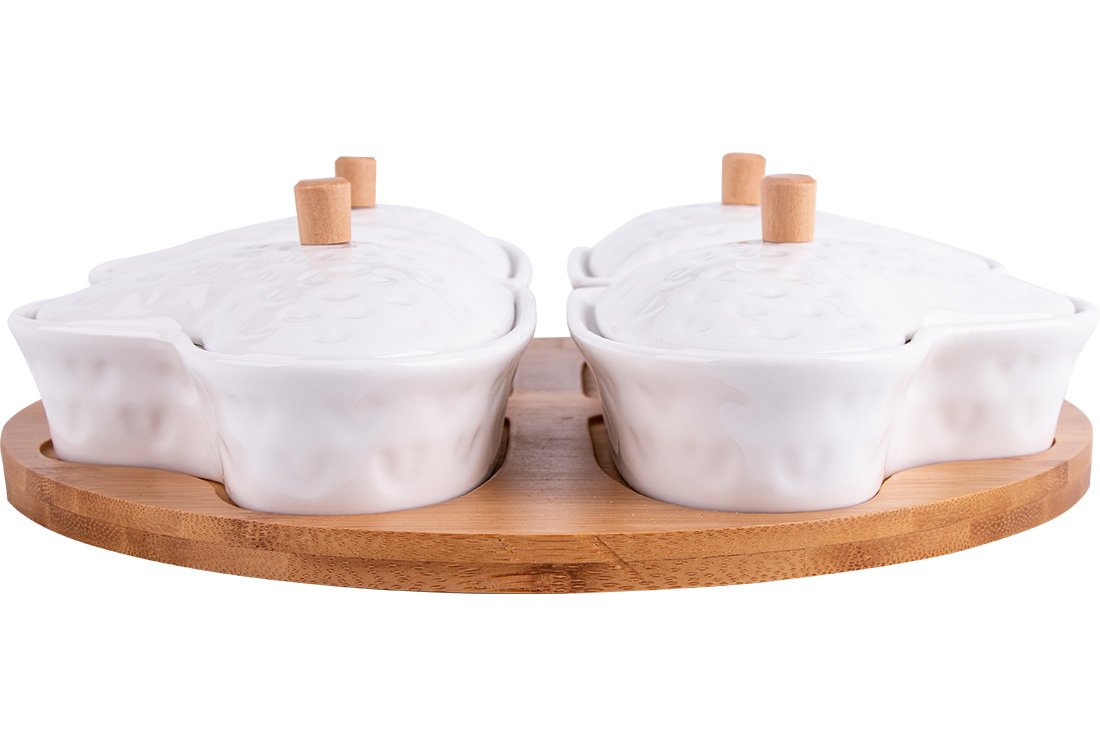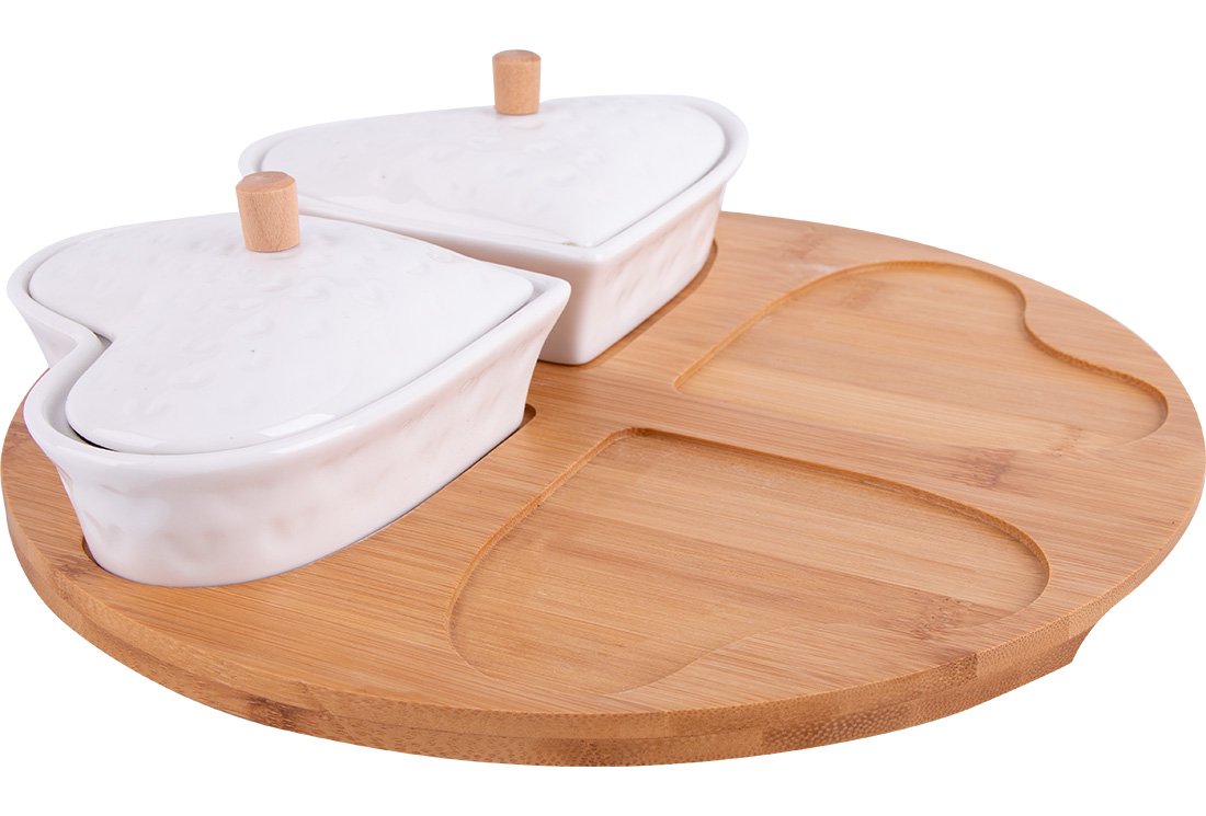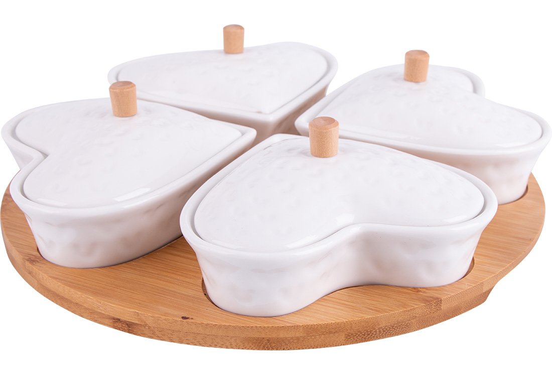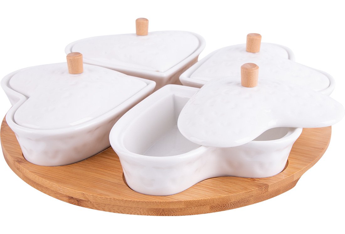 Teslimat: 1x Duygu 9 Parça Kahvaltılı / Çerezlik Seti | Bambu Porselen | Beyaz | Dg-8011