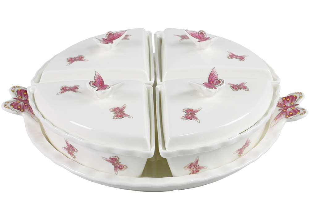 Teslimat ve Boyutlar: 1 x Duygu 9 Parça Kelebek Desenli Porselen Kahvaltı Kase Seti | Pembe | DG-5040