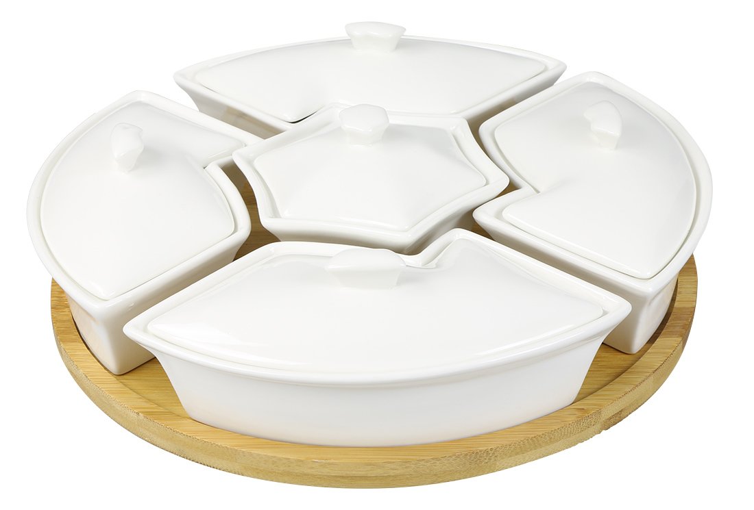 Teslimat: 1x Duygu Bambu Porselen Çerezlik | 5 Bölme | 11 Parça | Tepsili | Dg-6218