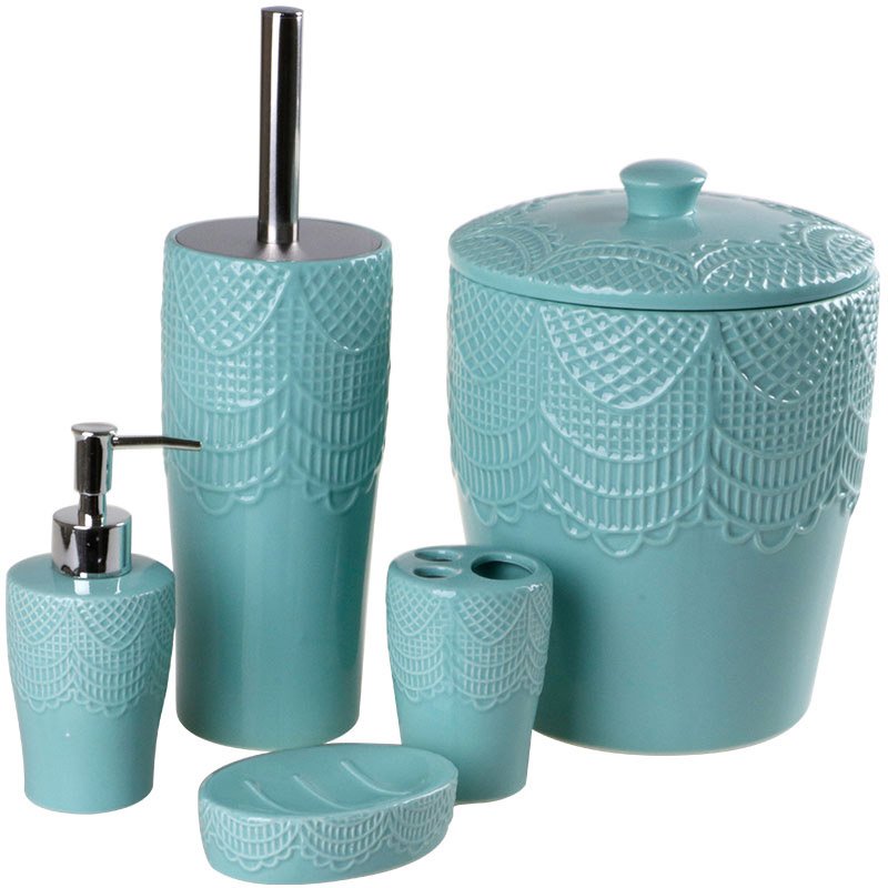 Malzeme: Porzellan Teslimat: 1x Duygu Gossip Banyo Seti 5 Parça Yeşil Turkuaz