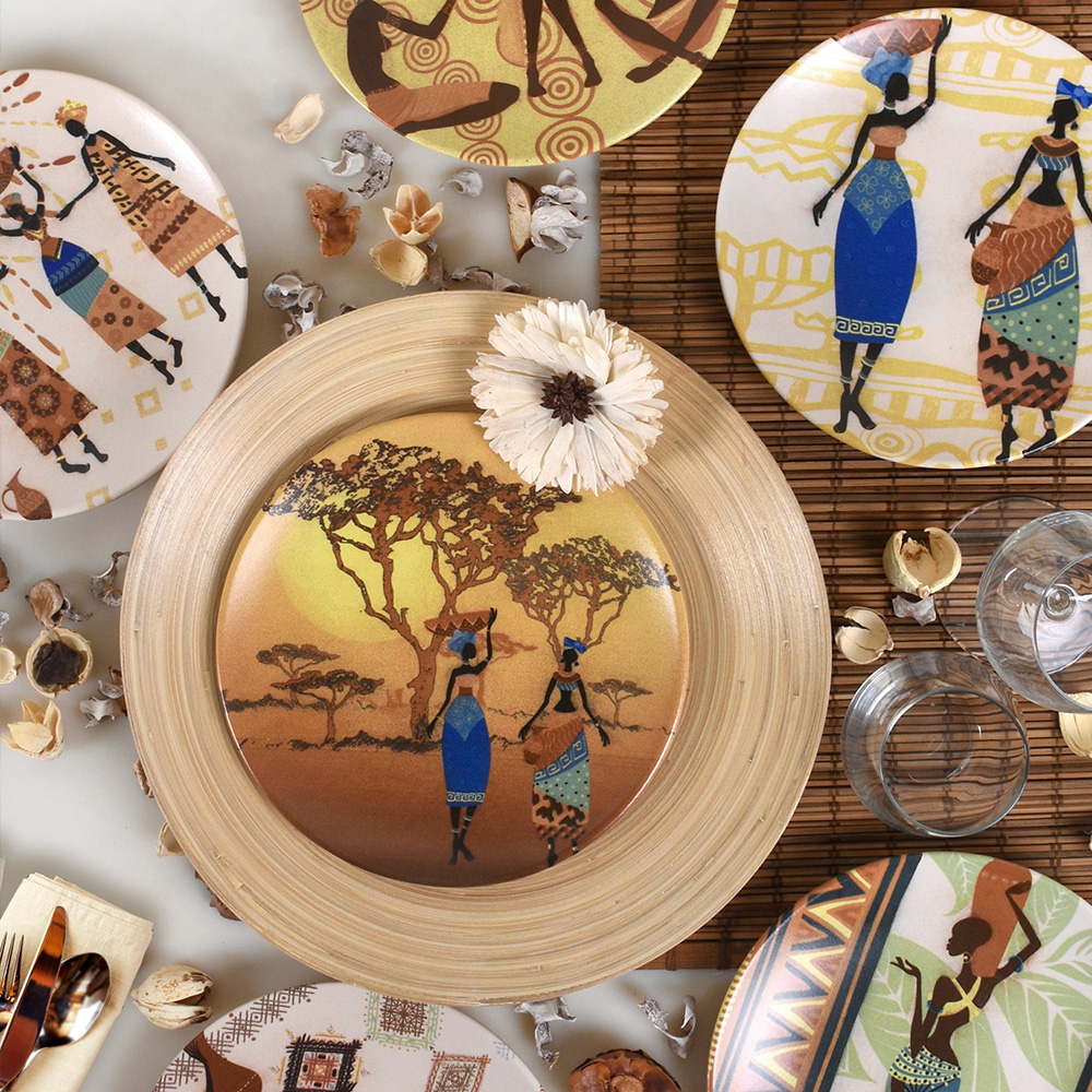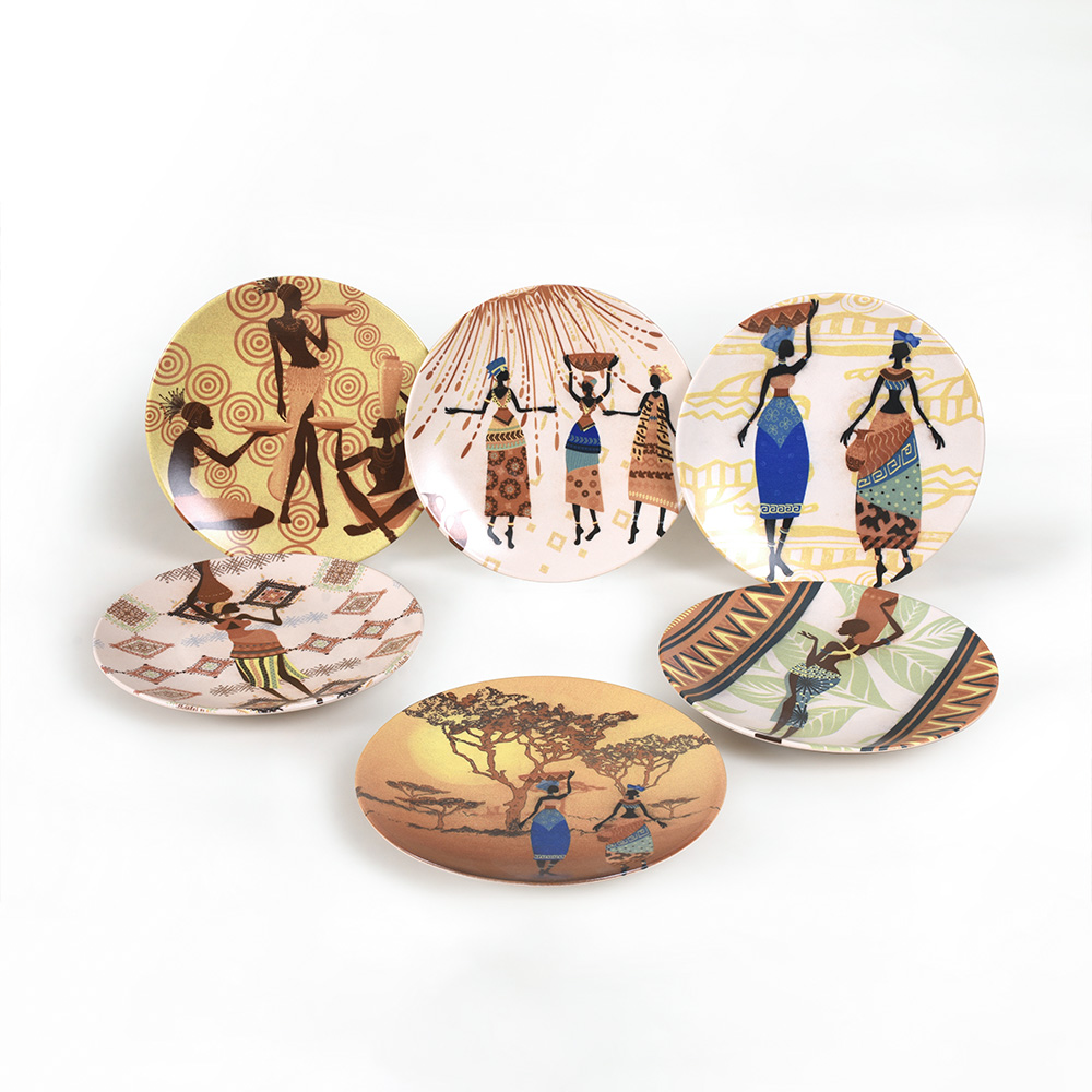 Ürün Adı: "Ege Pasta Tabağı Afrikalı Kadınlar 6 Adet 20 Cm 18105-10-13-15-17-18 | Keramika"