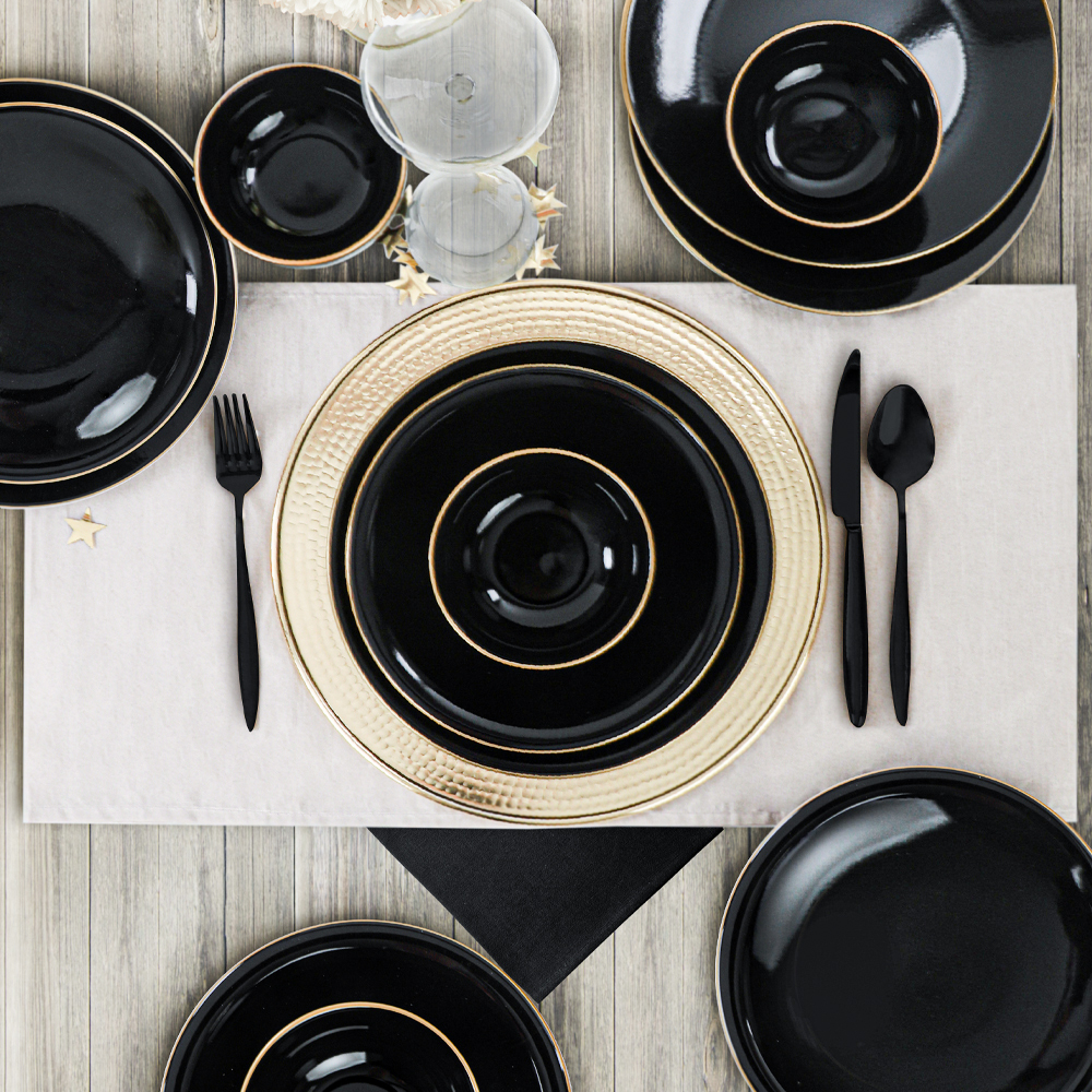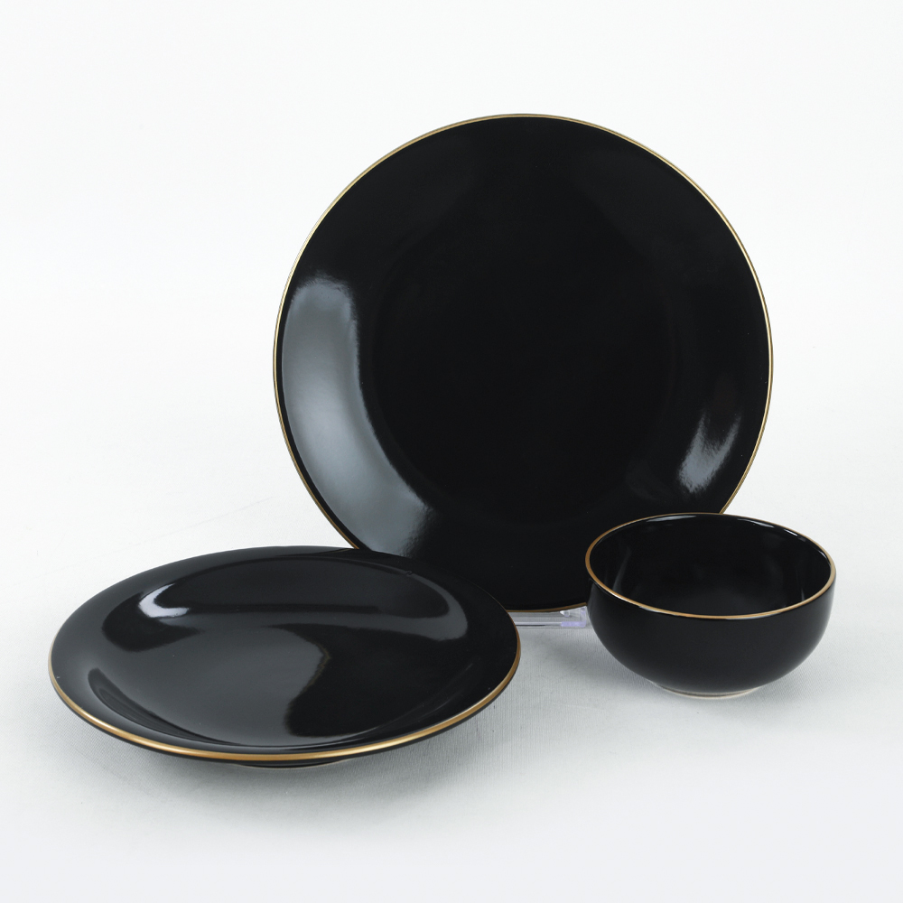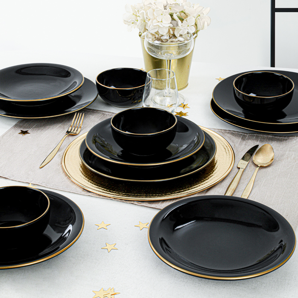 Ürün Adı: "Ege Siyah Gold Yemek Takımı 12 Parça 4 Kişilik | Keramika"