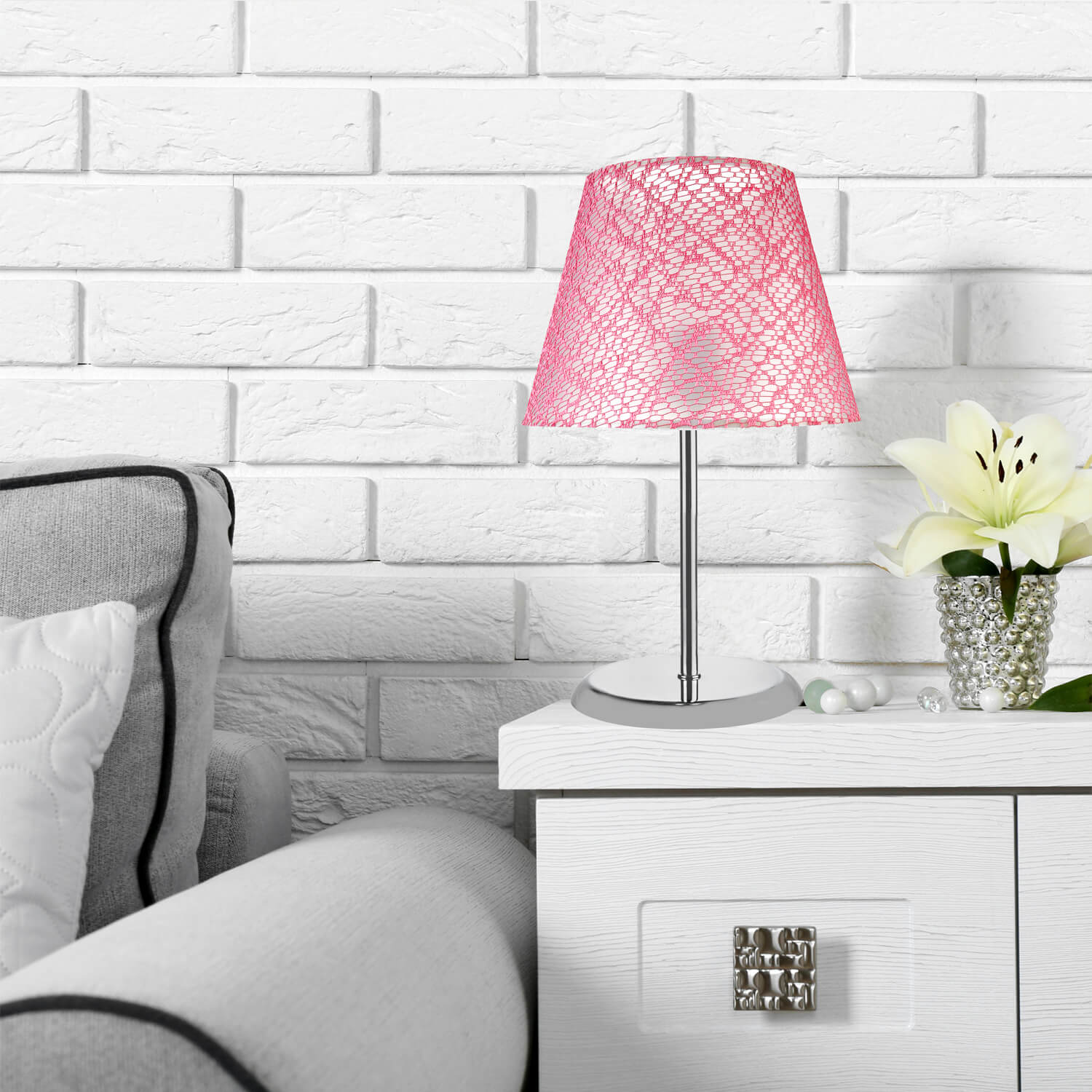 Elva Abajur Krom Ayak Pembe File Şapka