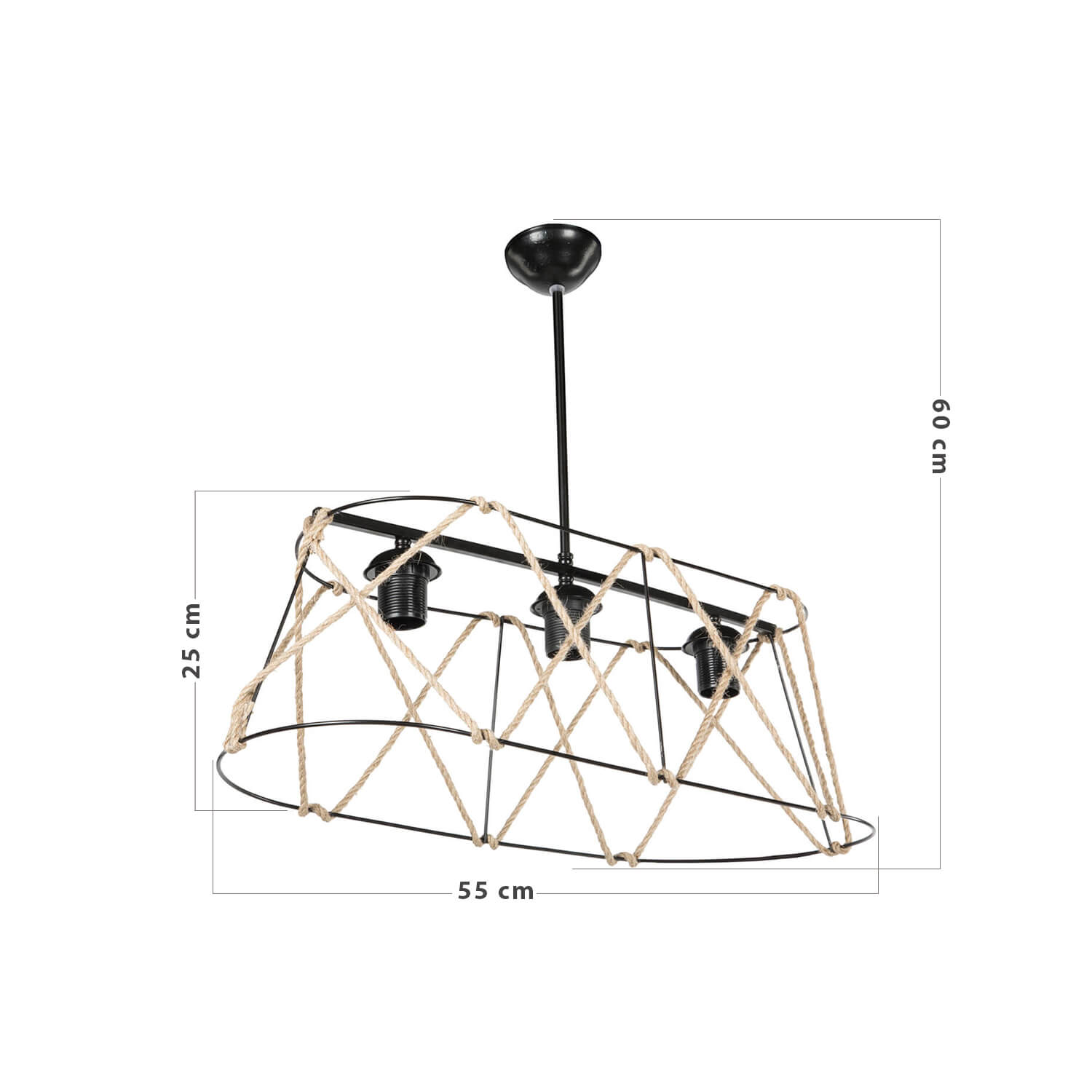 Ürün Adı: "Evren 3Lü Oval Avize Halatlı"