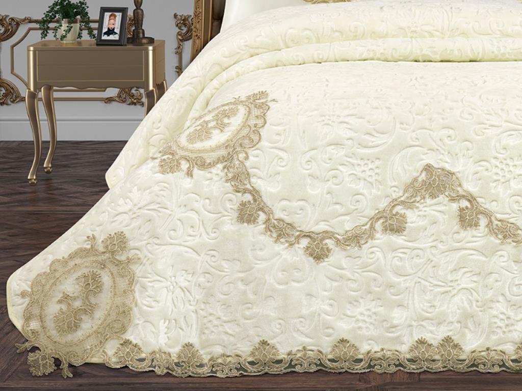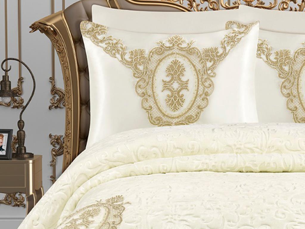 Ürün Adı: "Eylül Fransız Güpürlü Battaniye Takımı Krem"