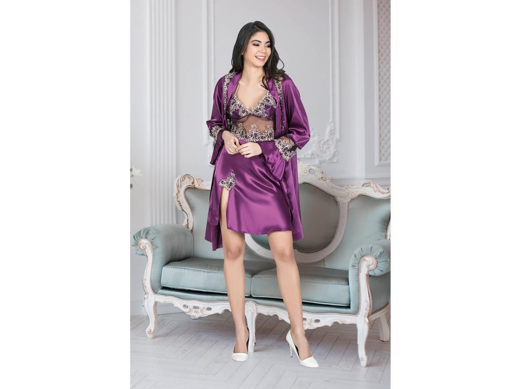 Ürün Adı: "Fayina Pamuk Saten Dantelli Sabahlık Ve Gecelik Takımı Mürdüm"