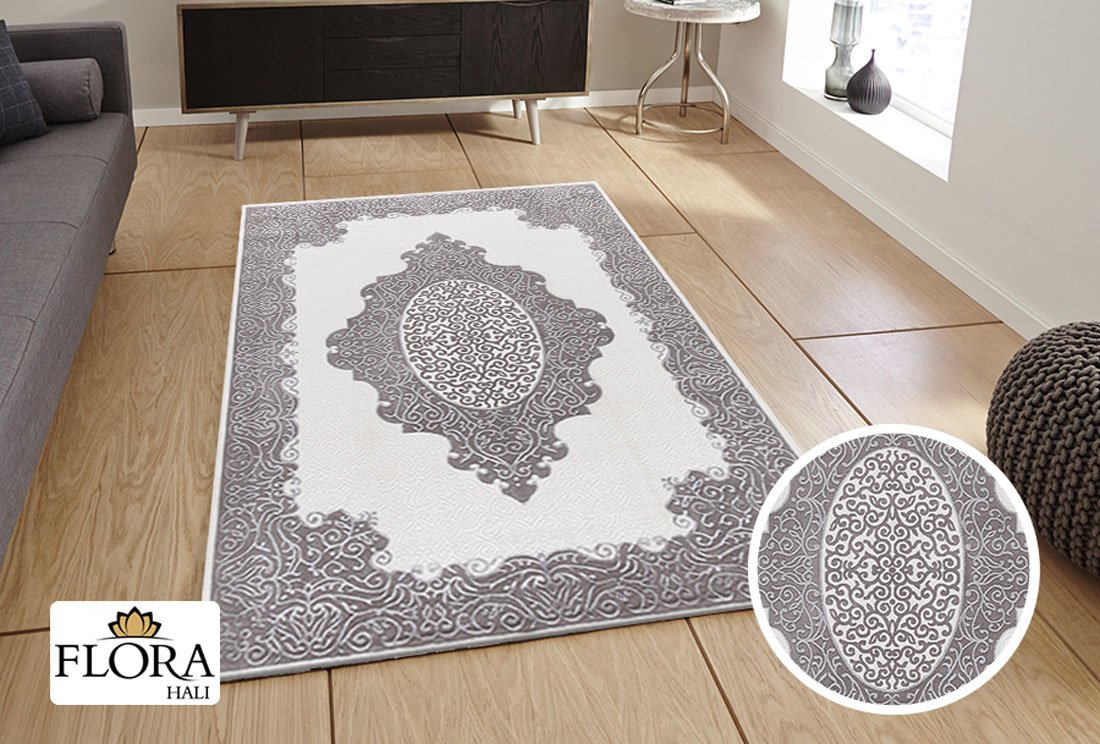 Teslimat : 1 x Flora Gökçe Collection Halı | Gri | F-4582A-Grey