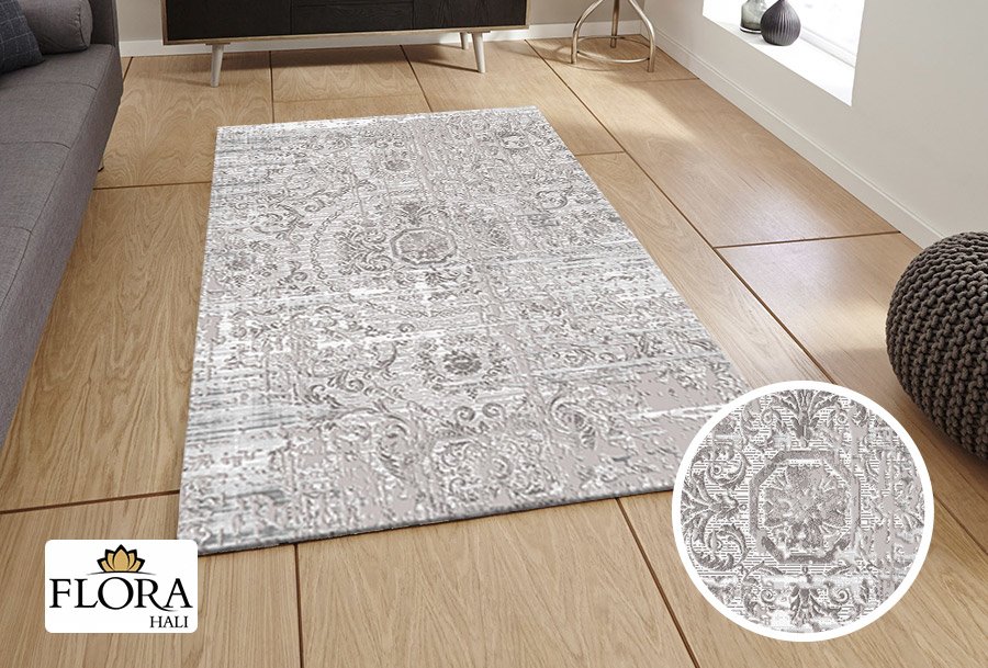 Teslimat : 1 x Flora Lavanta Collection Halı | Krem / Açık Gri | F-4309A-Cream-Grey