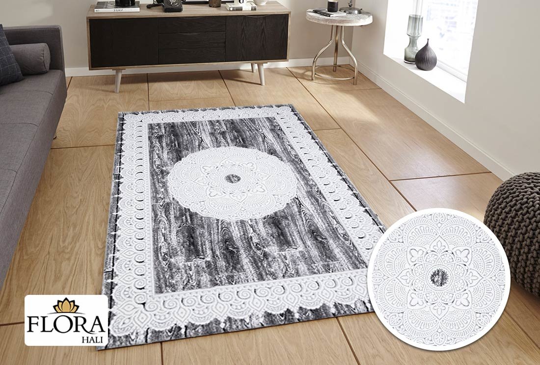 Teslimat : 1 x Flora Manolya Collection Halı | Grey | F-281A-Grey
