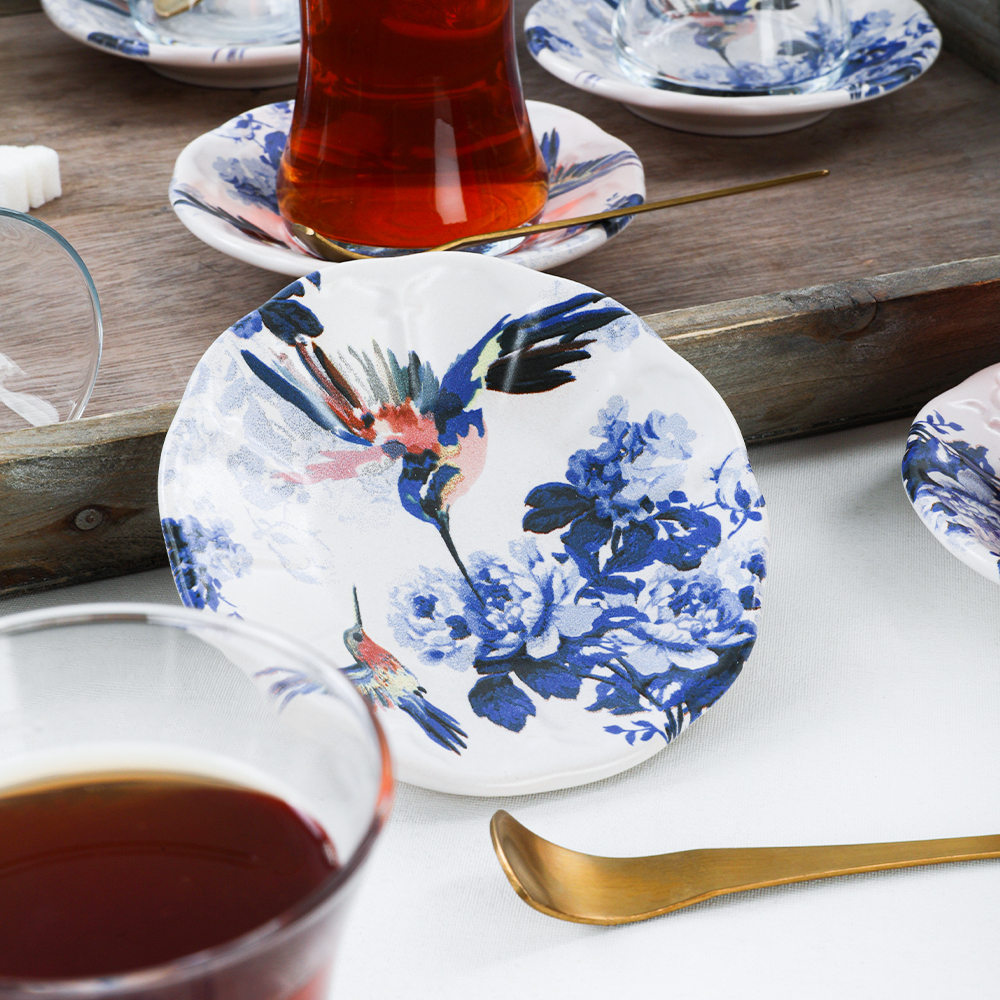 Seçenekler arasında sade ve şık görünüm ile yer alan keramika 6 kişilik florya cam çay takımı, özel koleksiyon arasında yer alan ve kolay yıkanabilir özelliği sayesinde tercih listesinin ilk sırasında yer alıyor. Misafir ağırlamaktan zevk alıyorsanız bu ürün tam da size göre olabilir. Zarif ve neşeli duruşunun yanında doğadan ilham alan kuş dekoru ve sakin renkleri ile son derece şık bir görünüm sağlayan bu çay takımı sevdikleriniz için çok hoş bir hediye de olacaktır.