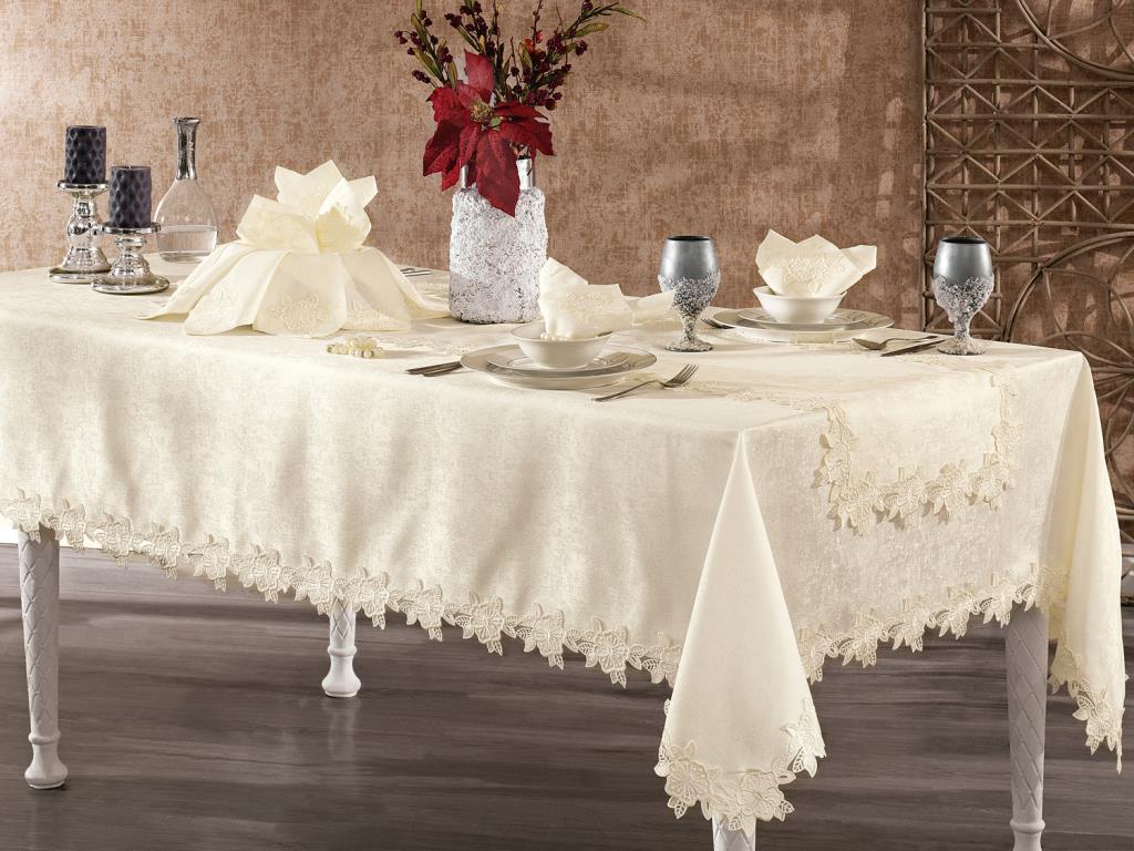 Ürün Adı: "Fransız Güpürlü Lara Şönil Masa Örtüsü Takımı 26 Parça"
