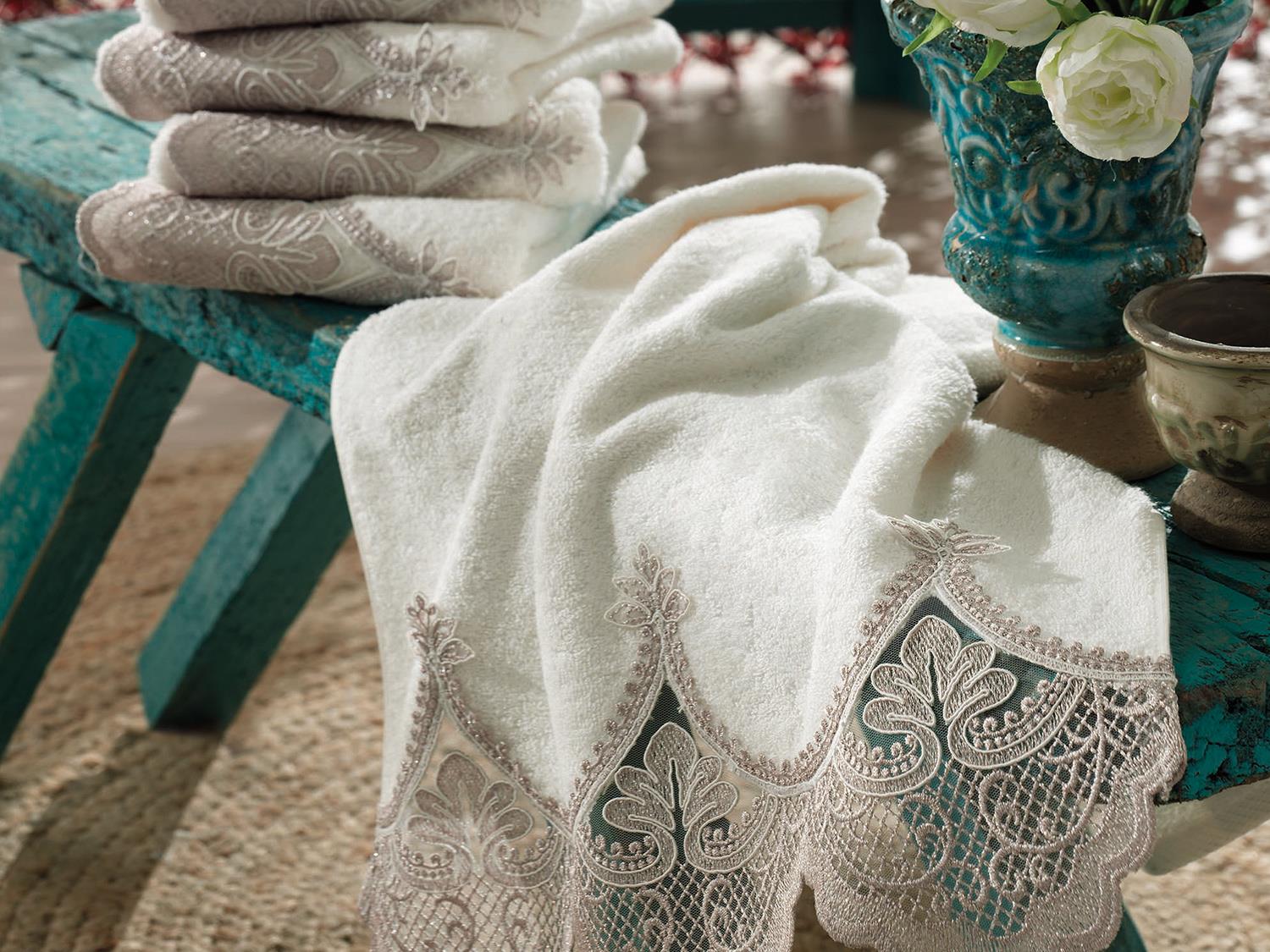 Fransız Güpürü süslemesi ile özel bir tasarım oluşturulmuştur.