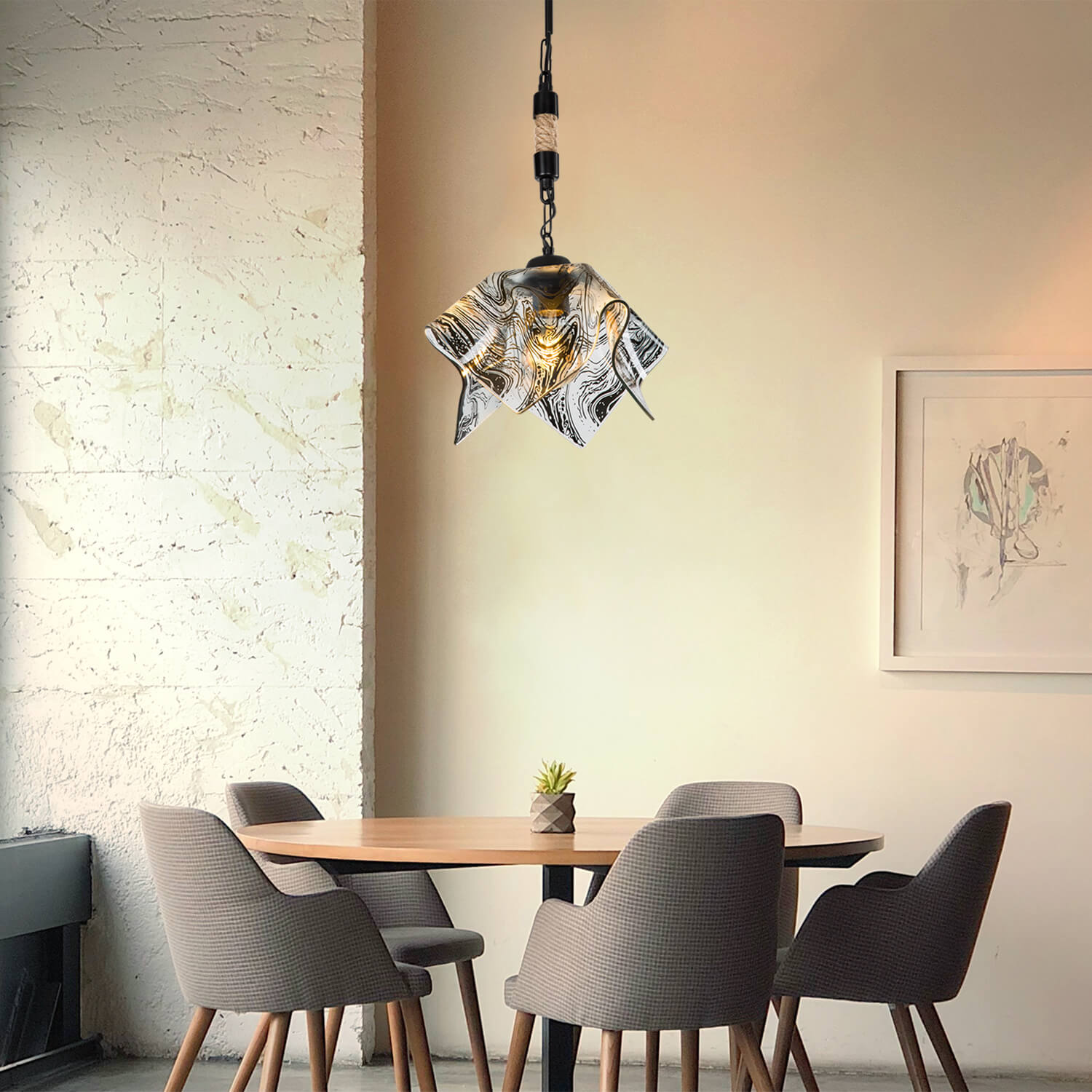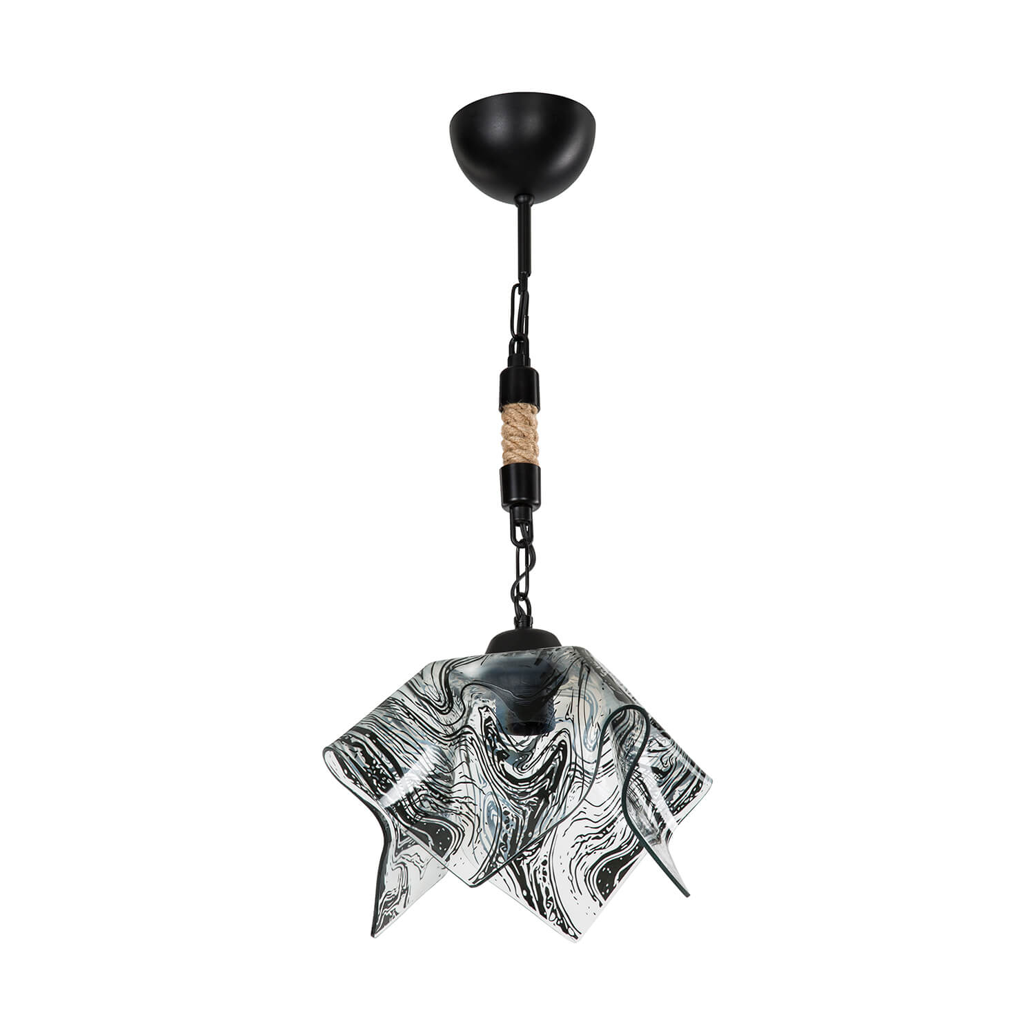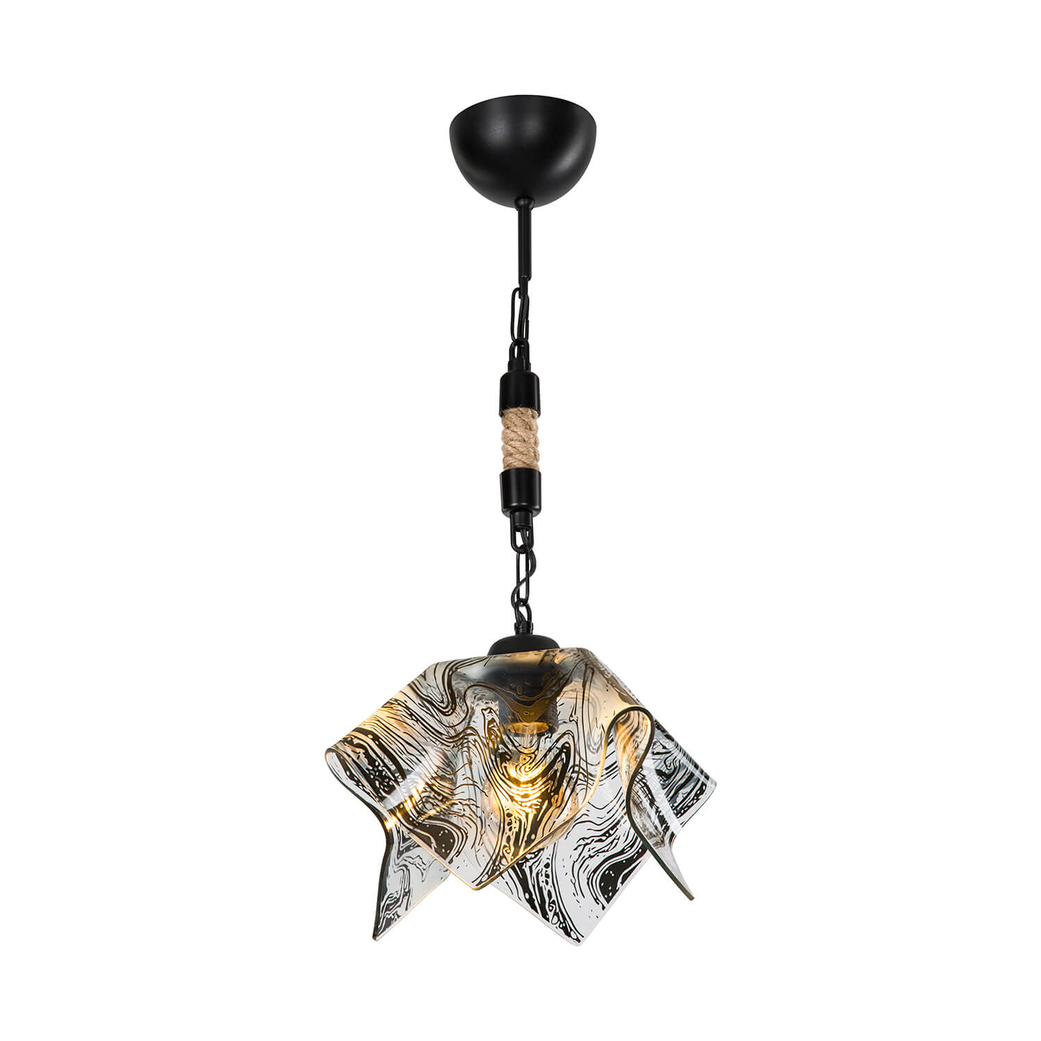 • Metal gövdenin; organik halat ve modern tasarımlı camın birarada kullanılmasıyla şık bir ev aydınlatmasına sahip olan ürün, dekorasyonda fark yaratmak isteyenlerin dikkatini çekmektedir.