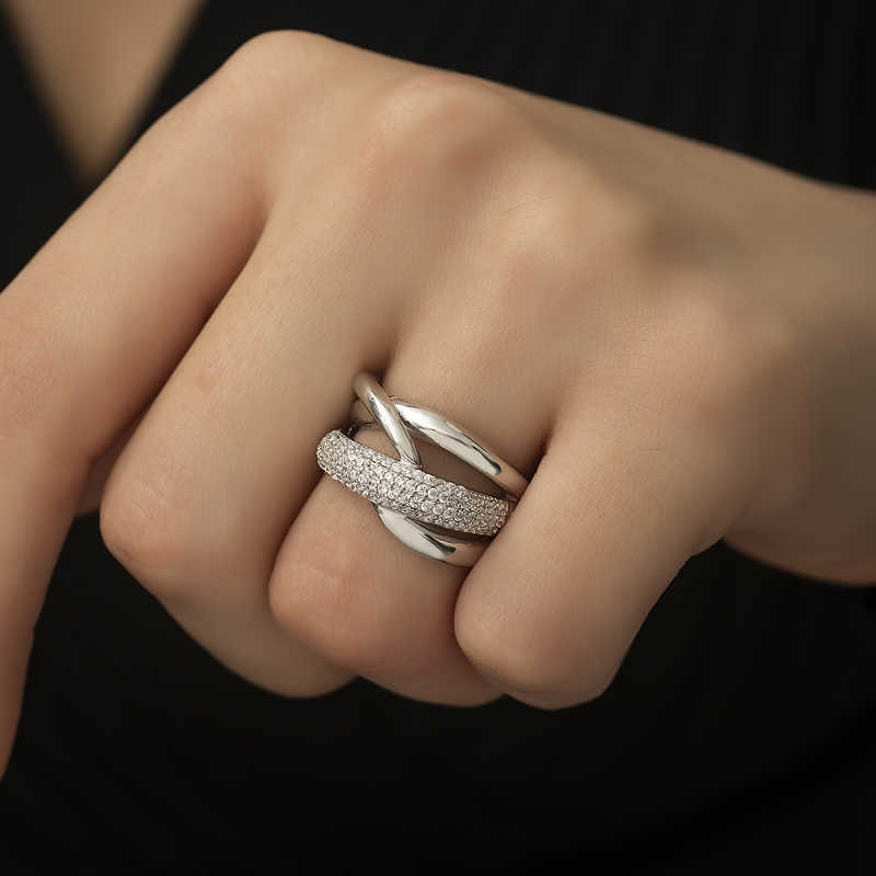 Teslimat: 1 x Gümüş Geçişli Model Bayan Yüzük