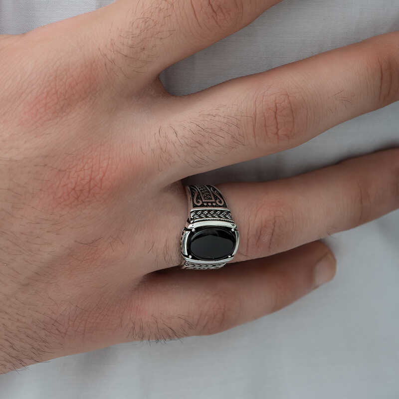 Teslimat: 1 x Gümüş Oniks Taşlı Örgü Desenli Erkek Yüzük