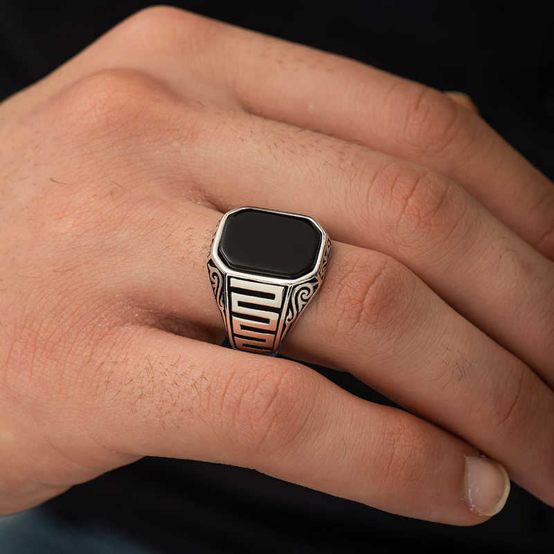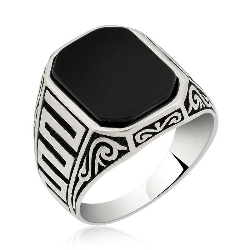 Gümüş Siyah Taşlı Erkek Yüzük