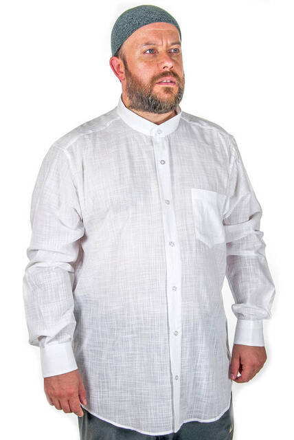 Ürün Adı: "Hakim Yaka Manşetli Keten Beyaz Gömlek"