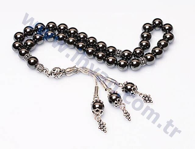 Bu hematit doğaltaş tesbih hematit taşının en güzel tonlarından özel olarak şeçilerek üretilmiştir. Bu hematit taşından üretilmiş olan tesbihin püskülü, imameleri, ayracı hiçbir yerde bulamıyacağınız model ve tasarımda olup, bu hematit taşı tesbihler firmamızın bizzat tasarladığı modelde üretilmiştir. Ürünlerimizde orijinal doğal taşların yanı sıra estetikliğini arttırmak amacıyla bazı süsleme tesbih aparatları kullanılmış ve ürünlerin estetik görünümleri arttırılmıştır. Ayrıca orijinal hematit tesbihlerimiz firmamızın özel olarak üretmiş olduğu doğal taş tesbihlerde ip kesme problemini ortadan kaldırmak için kullanılan kopma ve dağılmalara karşı dayanıklı, kopmayan taş ipi olan elastik misina tarzı özel lastik ipe dizilmiştir. Normal kullanımda bu ip oldukça dayanıklı esnek ve uzun ömürlüdür. Bu özellikleriyle ürünlerimizi ip kopması, tesbih dağılması gibi problemleri yaşamadan rahatlıkla uzun süreler kullanabilirsiniz. Sizlerede özel tasarım ve dayanıklı özel ipiyle üretilmiş, hematit tesbih satın almanızı tavsiye ederiz. Ayrıca hematit taşı tesbih fiyatları da toptan fiyatına yakın uygun fiyattatır. Bu doğal taş tesbihleri hem sallamak hemde stres atmak için çekerek kullanabilirsiniz. Ayrıca bu tesbihlerin tane sayısı 33 olduğundan bu tesbihleri zikir çekmek amaçlı veya namazlarda tesbih çekmek amaçlı da kullanabilirsiniz. Çok amaçlı kullanabileceğiniz bu tesbihleri aynı zamanda muhteşem enerji ve faydalarından yararlanabilmek için de kullanabilirsiniz. Bu ürün orijinal hematit taşından üretildiği için hematit taşının şu psikolojik ve fiziksel faydalara sahiptir ; Bircok taşta olduğu gibi hematit taşıda çağımızın en büyük sorunlarından olan strese ve gerginliğe karşı koruma sağlar. İnsana mutluluk, pozitif düşünme ve cesaret verici etkileri vardır. Hematit taşı kararsızlıklarımıza iyi gelir. Seçimlerimizde en iyisini bulmamıza yardımcı olur. Hematit taşı bel soğukluğuna faydalıdır. Vücuttaki kan dolaşımını düzenler ve buna bağlı olarakta tansiyona iyi gelir. Hafızayı kuvvetlendirir. Eklemlerdeki romatizmalara iyi gelir. Hematit taşı saç dökülmelerini engeller. Saçlarımızın güçlenmesini ve gürleşmesini sağlar. Aşırı duygulanma heycanlanmaya iyi gelir. Eenerji ve canlılık verici etkileri vardır.