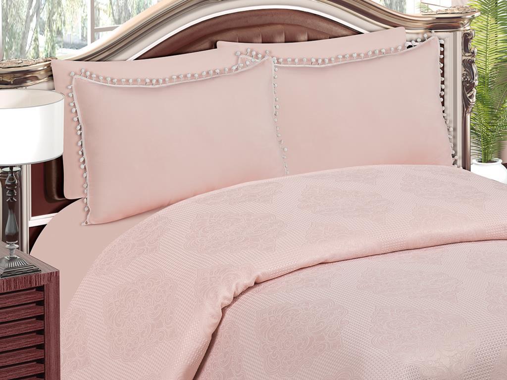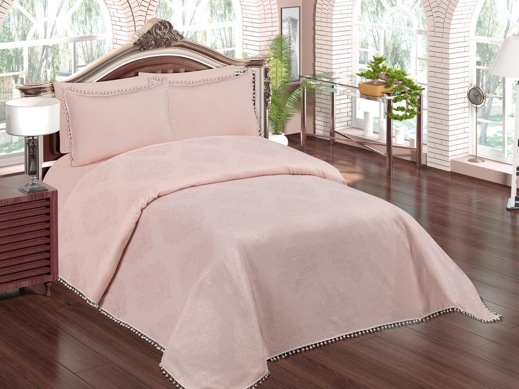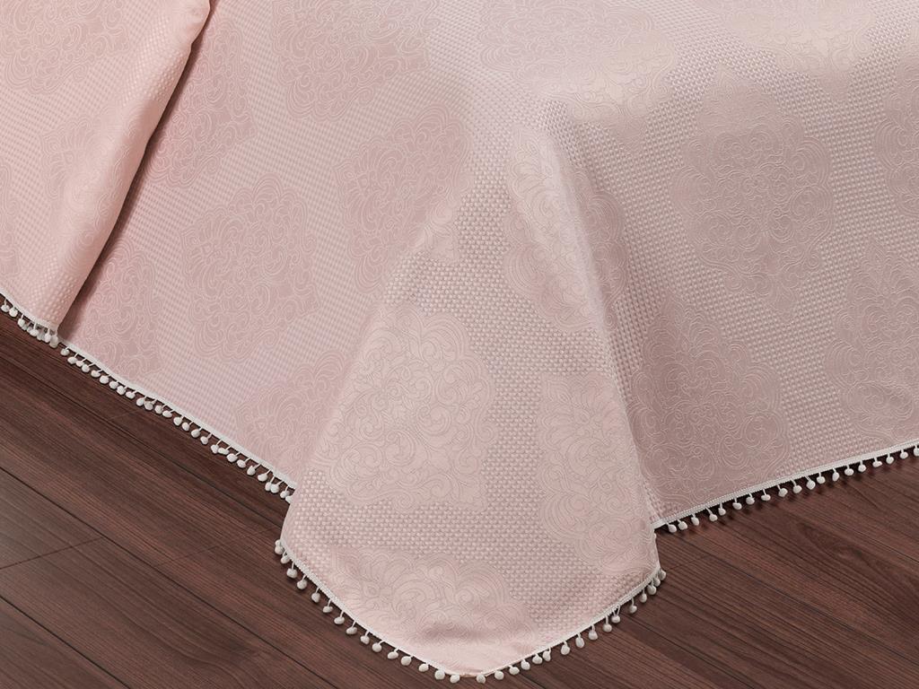 Ürün Adı: "Heves Ponponlu Pamuklu Yatak Örtüsü Pudra"