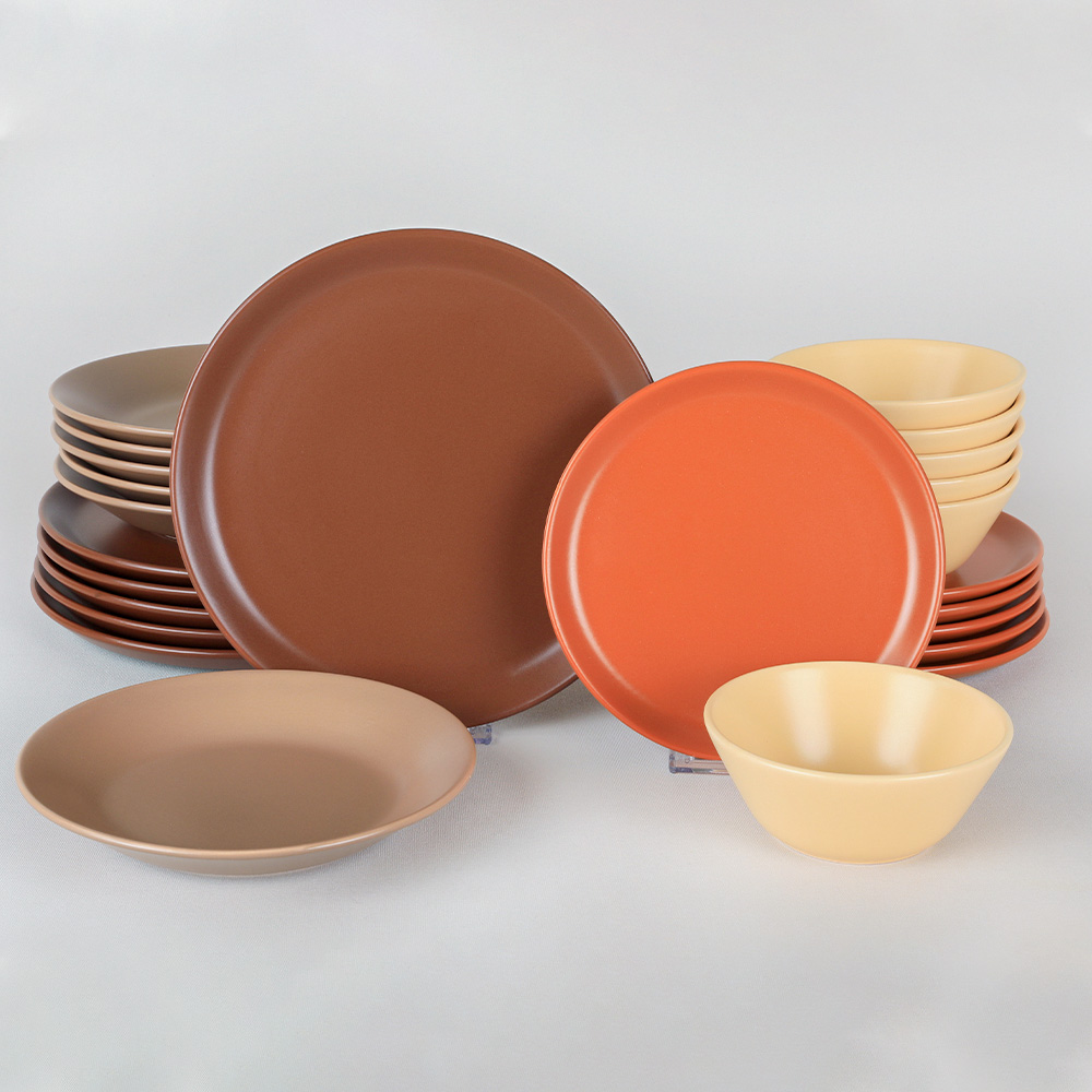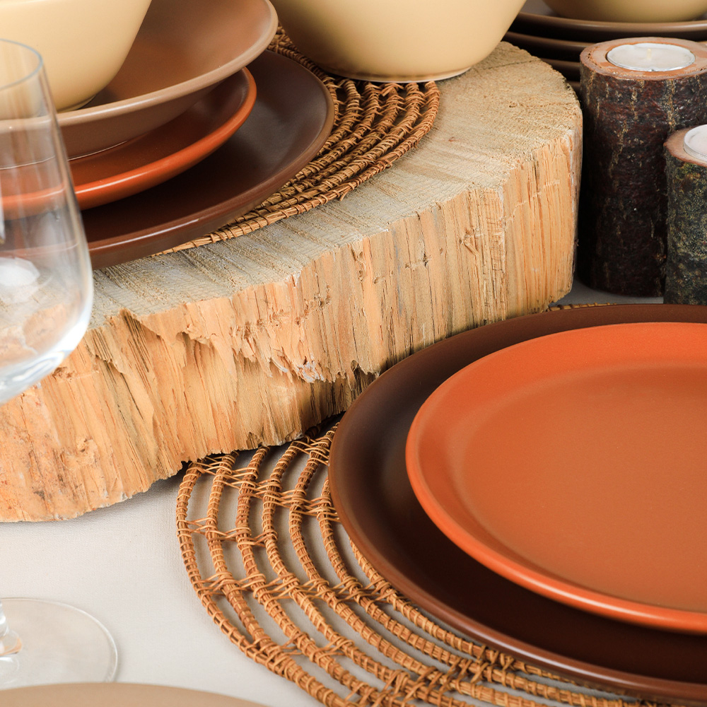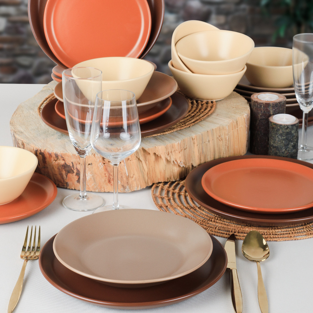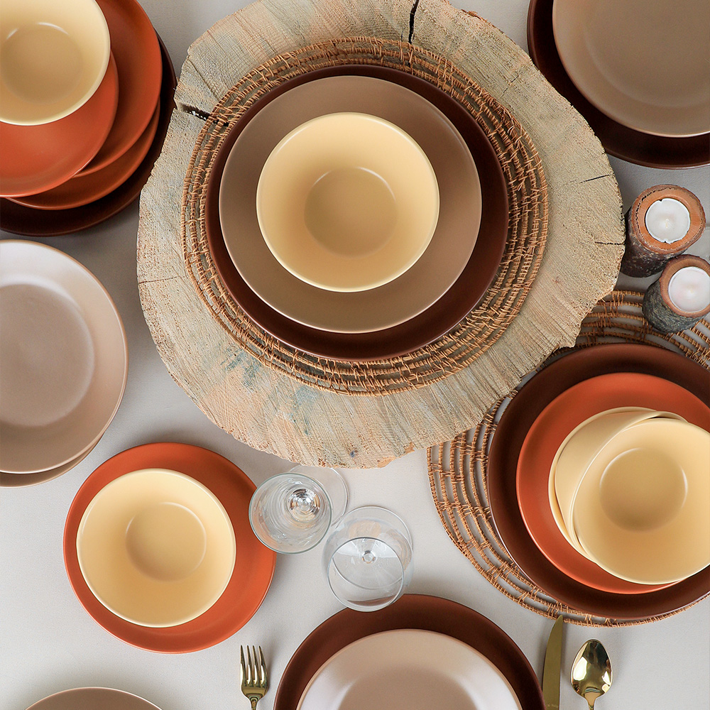 Modern formlar ile tasarlanan keramika 6 kişilik degrade kahverengi hitit yemek takımı, usta ellerle şekillenerek özenle üretilmiştir. Kahverengi tonlarının sakinleştirici zerafetini ve hititin kullanışlı yapısını kahvaltılarınızda, şık akşam yemeklerinizde kullanabilirsiniz. Sevdiklerinizi değerli hissettirecek bu yemek takımını zarif bir hediye olarak da tercih edebilirsiniz.