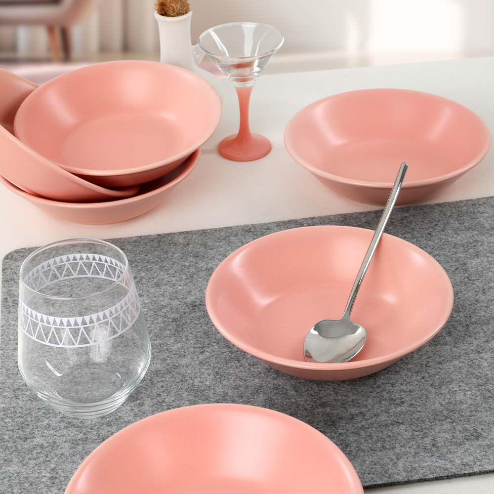 Ürün Adı: "Hitit Mat Açık Pembe Yemek Tabağı 18 Cm 6 Adet | Keramika"