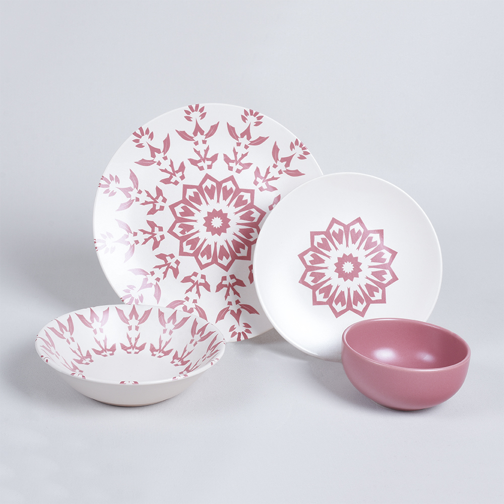 İknat Pembe Yemek Takımı 6 Kişilik 24 Parça 17931-30-29 | Keramika