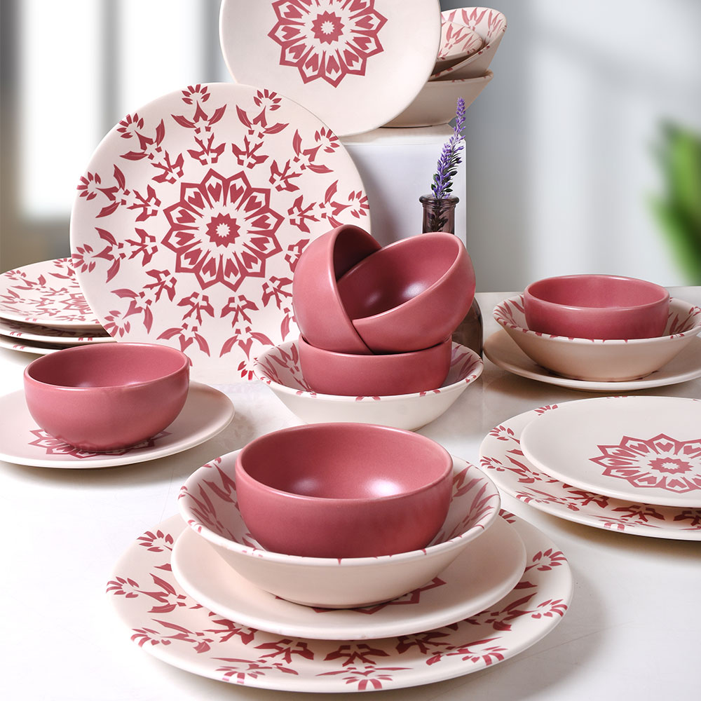 Ürün Adı: "İknat Pembe Yemek Takımı 6 Kişilik 24 Parça 17931-30-29 | Keramika"