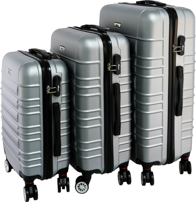 Teslimat ve Boyutlar: 1 x İmex Hard Case 3'lü Bavul Seti 360 ° Dönen Tekerlekli | Gümüş | TSA Kilitli | IMEX-8803-1