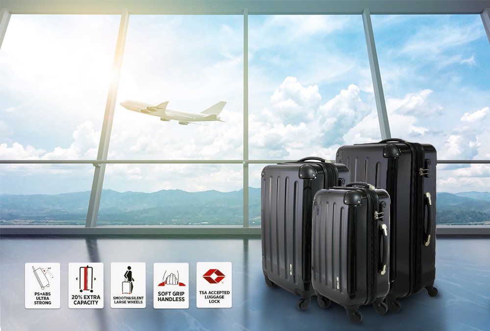 Teslimat ve Boyutlar: 1 x İmex Hard Case 3'lü Lüks Bavul Seti 360° Dönen Tekerlekli | Siyah | TSA Kilitli | S7260-black