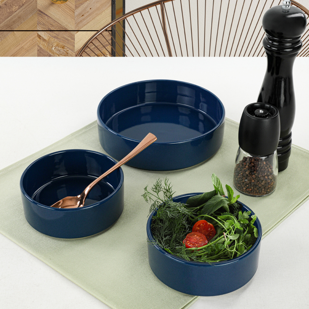 Ürün Adı: "İndigo Mavi Sackable Salata/Çerez Seti 3 Parça | Keramika"