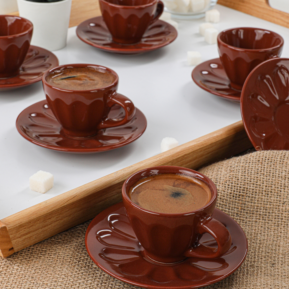 Kahve saatleriniz Keramika Kahverengi Badem Kahve Takımı ile farklı bir boyut kazanıyor! Yenilikçi formu ve asil renkleri ile usta ellerde üretilen bu kahve takımı aynı zamanda kalite ve dayanıklılığı beraberinde getiriyor. Özel renkleri ile misafirlerinizin dikkatini çekerek herkesin beğenisini sağlayacak olan bu kahve takımı aynı zamanda sevdiklerinizi mutlu etmek için hoş bir hediye seçeneği olacaktır.