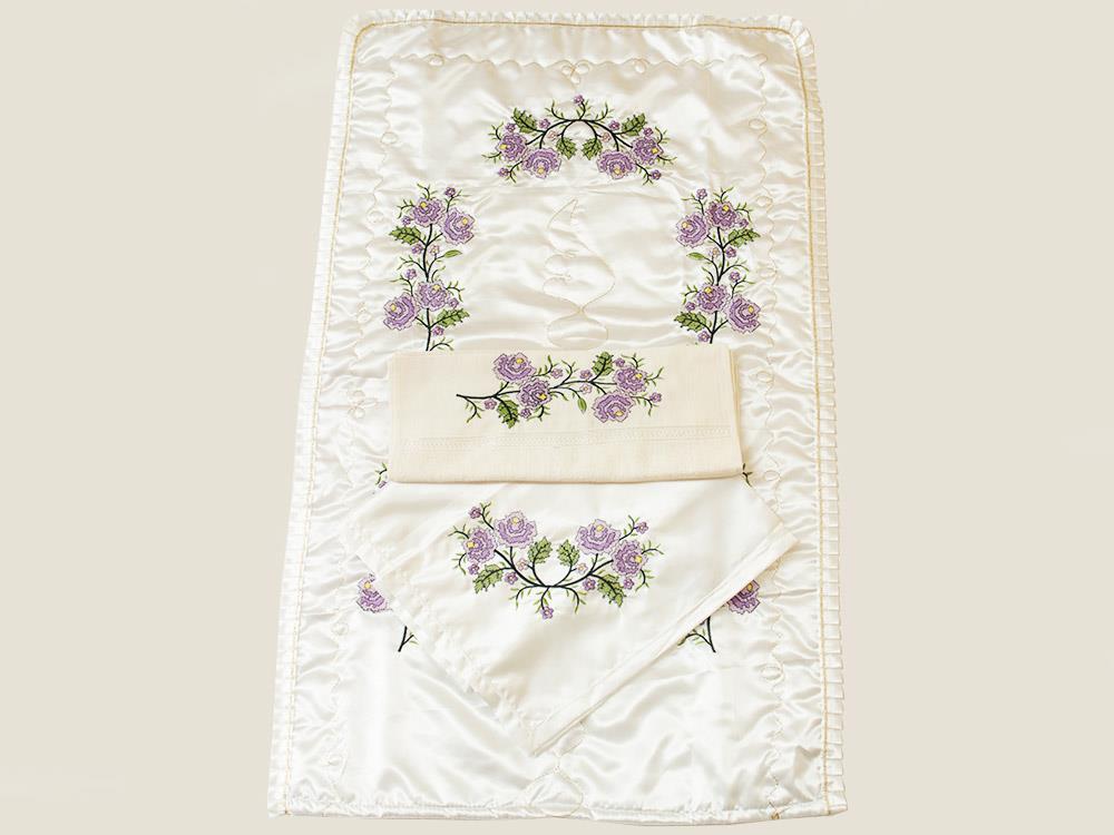 Saten Kumaştan Üretimi Yapılmıştır.Kanaviçe işlemeleri ile özel tasarım oluşturulmuştur.