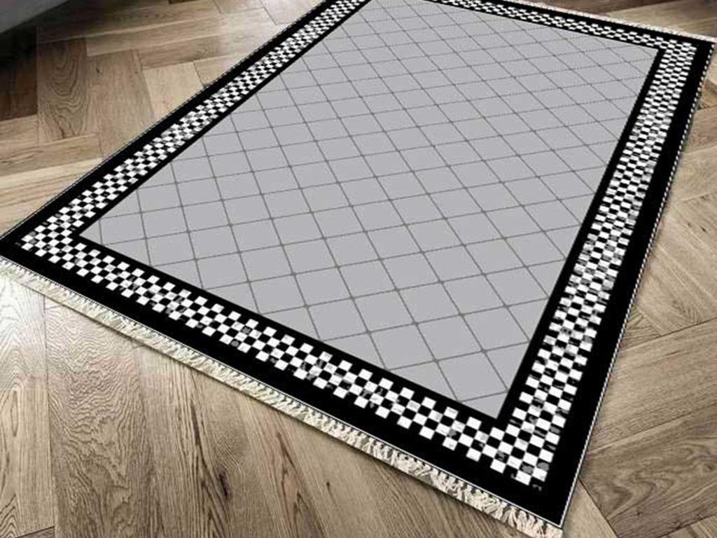 Ürün Adı: "Kaymaz Taban Dijital Baskı Kadife Halı Dama Gri 180x280 cm"