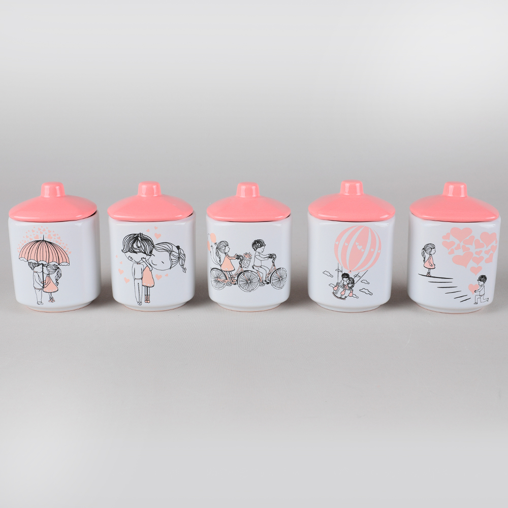 Ürün Adı: "Kera&Mira Pink Love Baharat Takımı 8 cm 5 Adet | Keramika"