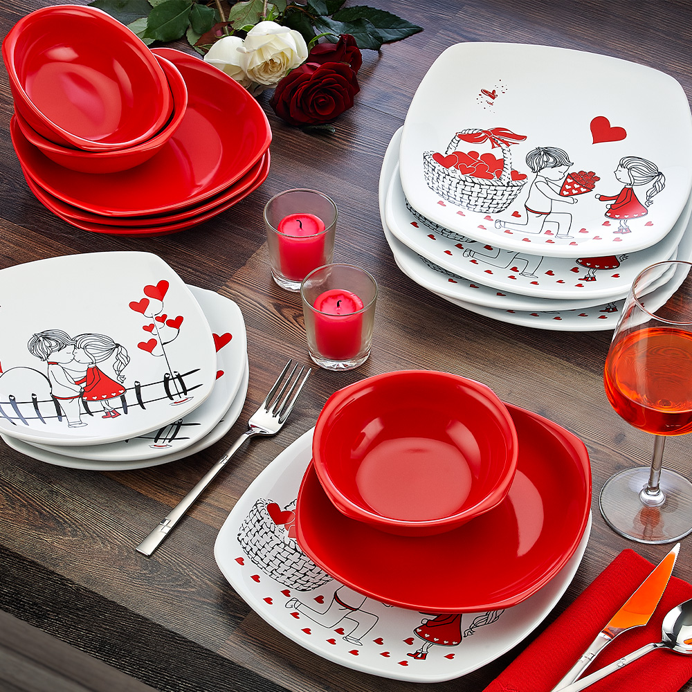 Ürün Adı: Keramika | Kera Mira 24 Parça 6 kişilik Kırmızı Beyaz Yemek Takımı