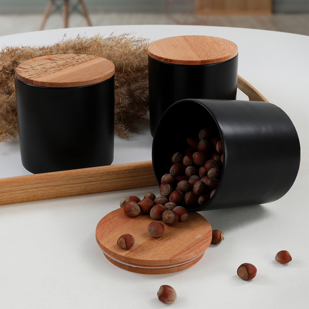 Ürün Adı: "Keramika | Mat Siyah Ege Saklama Kabı 12 cm 3 Parça"