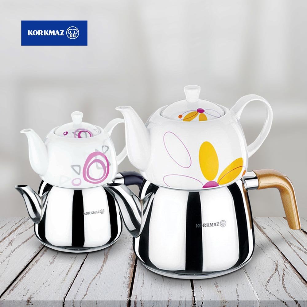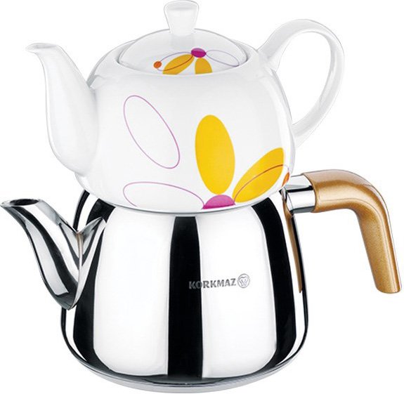 Teslimat: 1 x Korkmaz Bonjour Çaydanlık Porselen Demlik Paslanmaz Çelik 2.9lt | İndüksiyon | A068