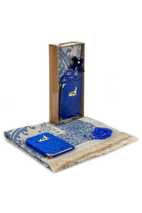 Ürün Adı: "Kraft Kutulu Seccade Seti - Kadife Kaplı Yasin - Seccade - Tesbih - Lacivert Renk"
