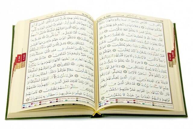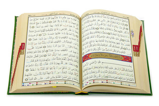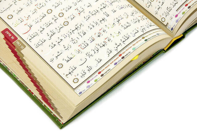 ORTA BOY, DÖRT RENKLİ, SAYFA ALTI TECVİDLİ, TERMO DERİ CİLT, BİLGİSAYAR HATLI KUR’AN-I KERİM