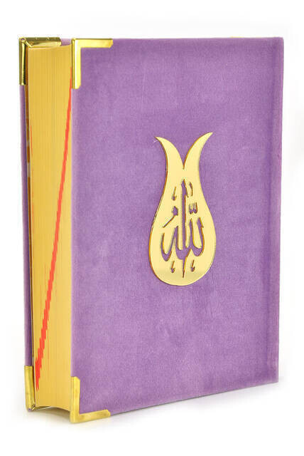 Ürün Adı: "Kuranı Kerim - Kadife Kaplı - Allah Lafızlı - Sade Arapça - Orta Boy - Lila Renk - Bilgisayar Hatlı"
