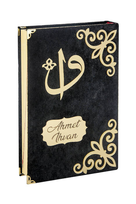 Kuranı Kerim - Kadife Kaplı - İsme Özel Plakalı - Elif-Vav Harfli - Sade Arapça - Orta Boy