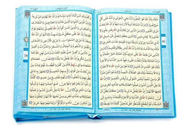 • Sayfa üstlerinde kullanılan kılavuzlarda surelerin ve cüzlerin isimleriyle beraber numaraları da verilerek okuyucunun aradığı sure ve cüzü numarasından da rahatlıkla bulabilmeleri amaçlanmıştır.