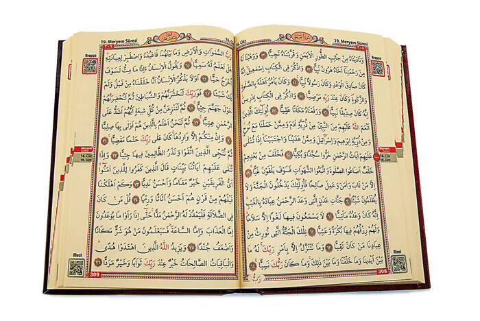 Buna dair başka bağlantılar "Orta Boy İki Renkli Karekodlu Bilgisayar Hatlı Kuranı Kerim - Kırmızı Renk"
