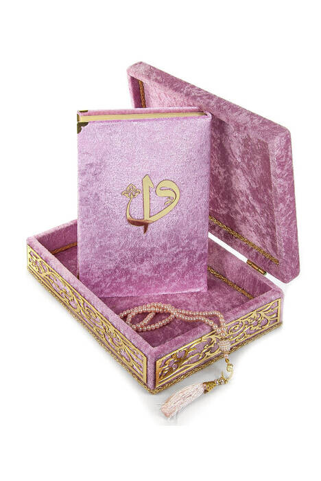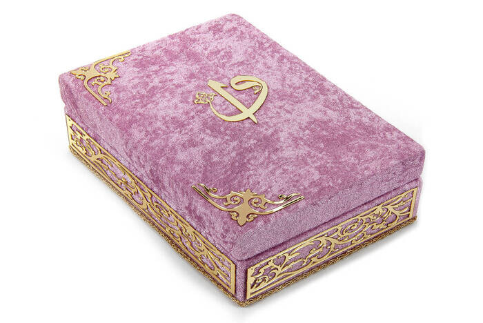 Ürün Adı: "Özel Elif Vav Pleksi Süslemeli Hediyelik Kadife Kaplı Kutulu Kuranı Kerim Pembe"