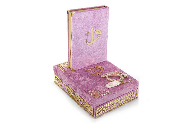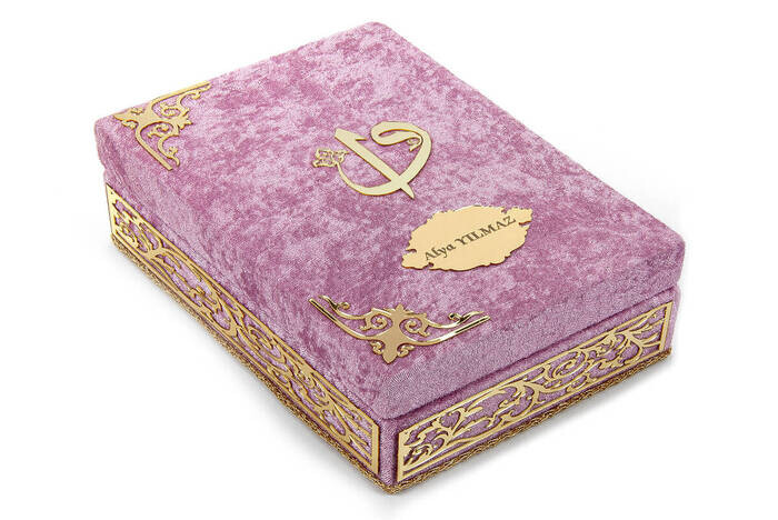 Buna dair başka bağlantılar "Özel Elif Vav Pleksi Süslemeli Hediyelik Kadife Kaplı Kutulu Kuranı Kerim Pembe"