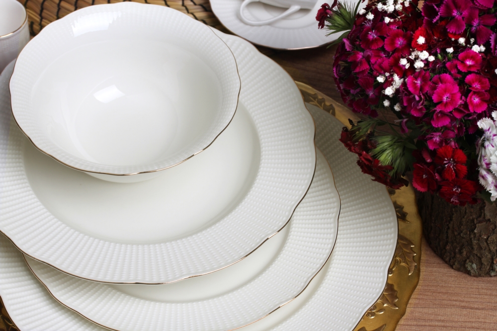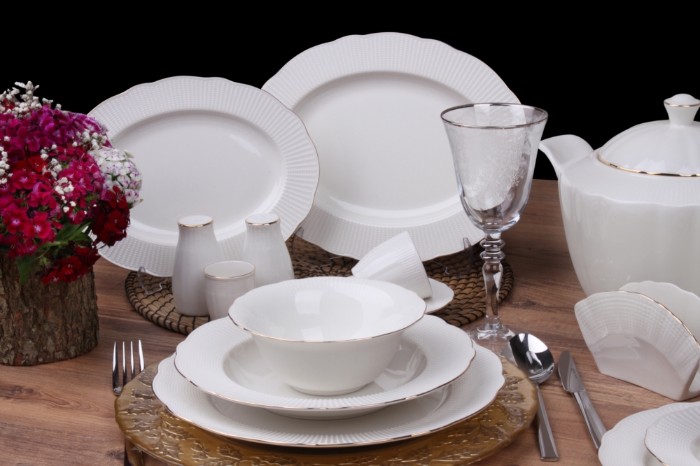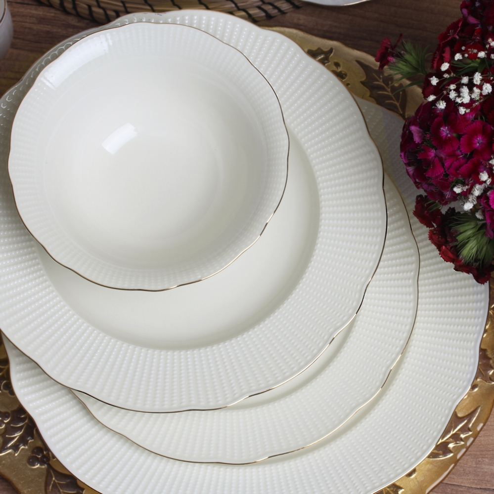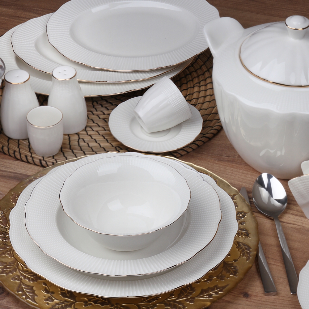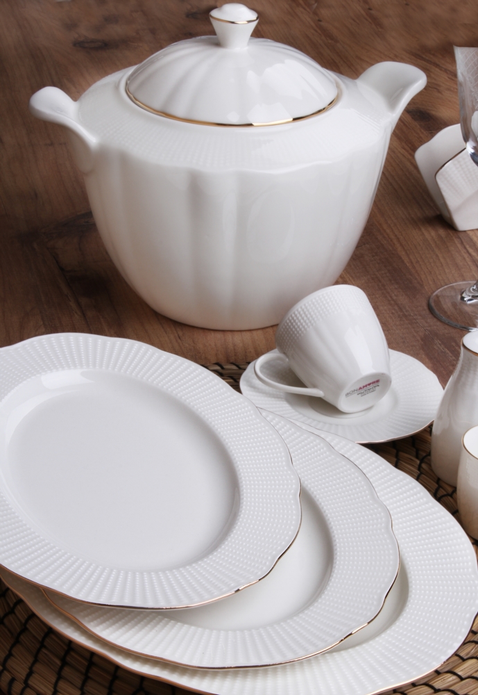 Kütahya Porselen Bone İlay 83 Parça Yemek Takımı 83 Parçadan Oluşan Altın Fileli Yemek...daha fazla bilgi
